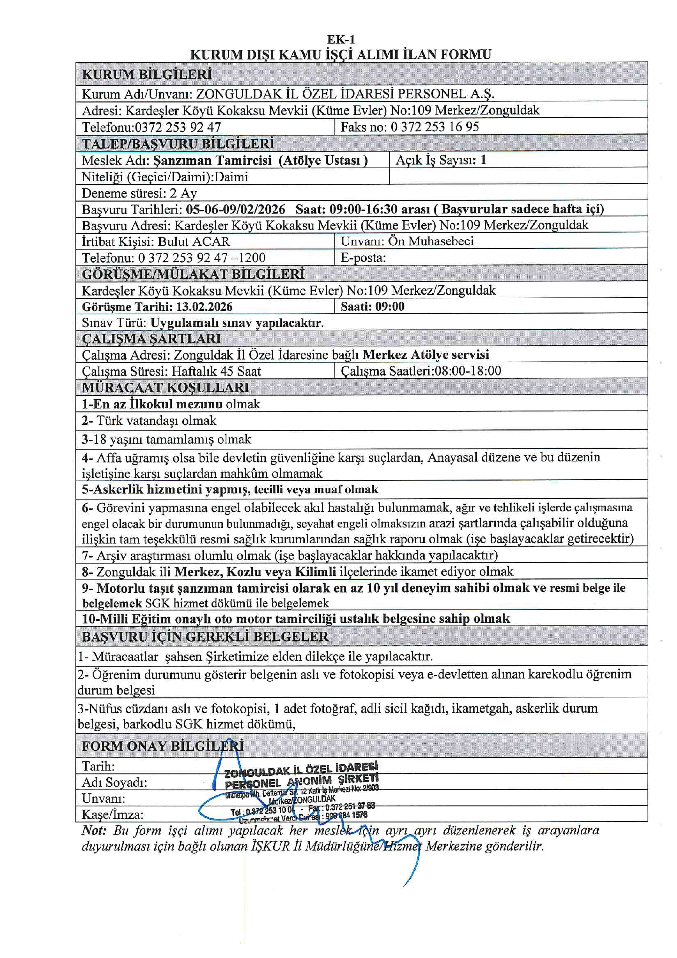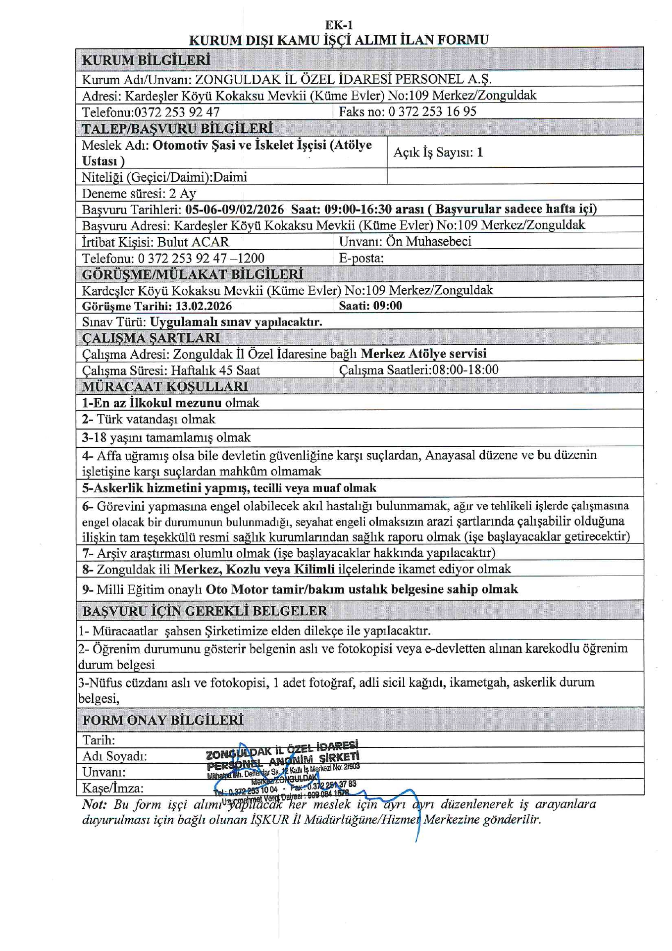 Zonguldak İl Özel İdaresi 2 İşçi Alacak. Son başvuru tarihi 5 Şubat 2026