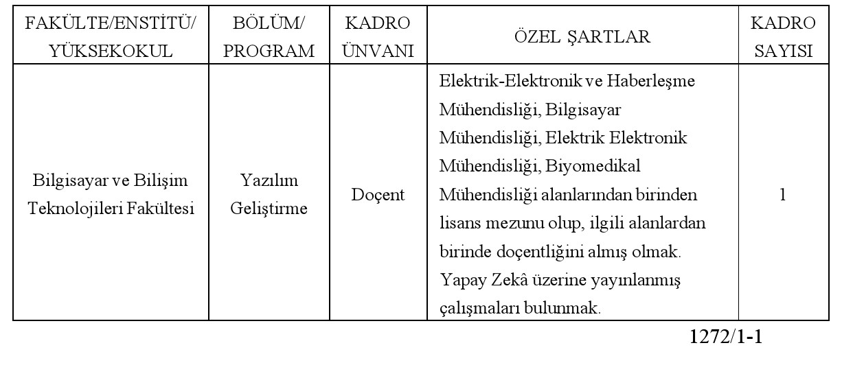 ÖĞRETİM ÜYESİ ALIM İLANI