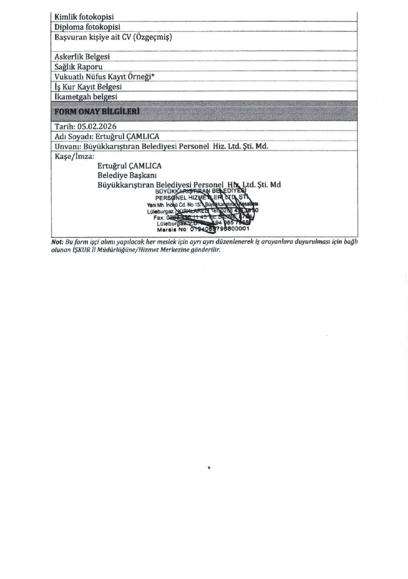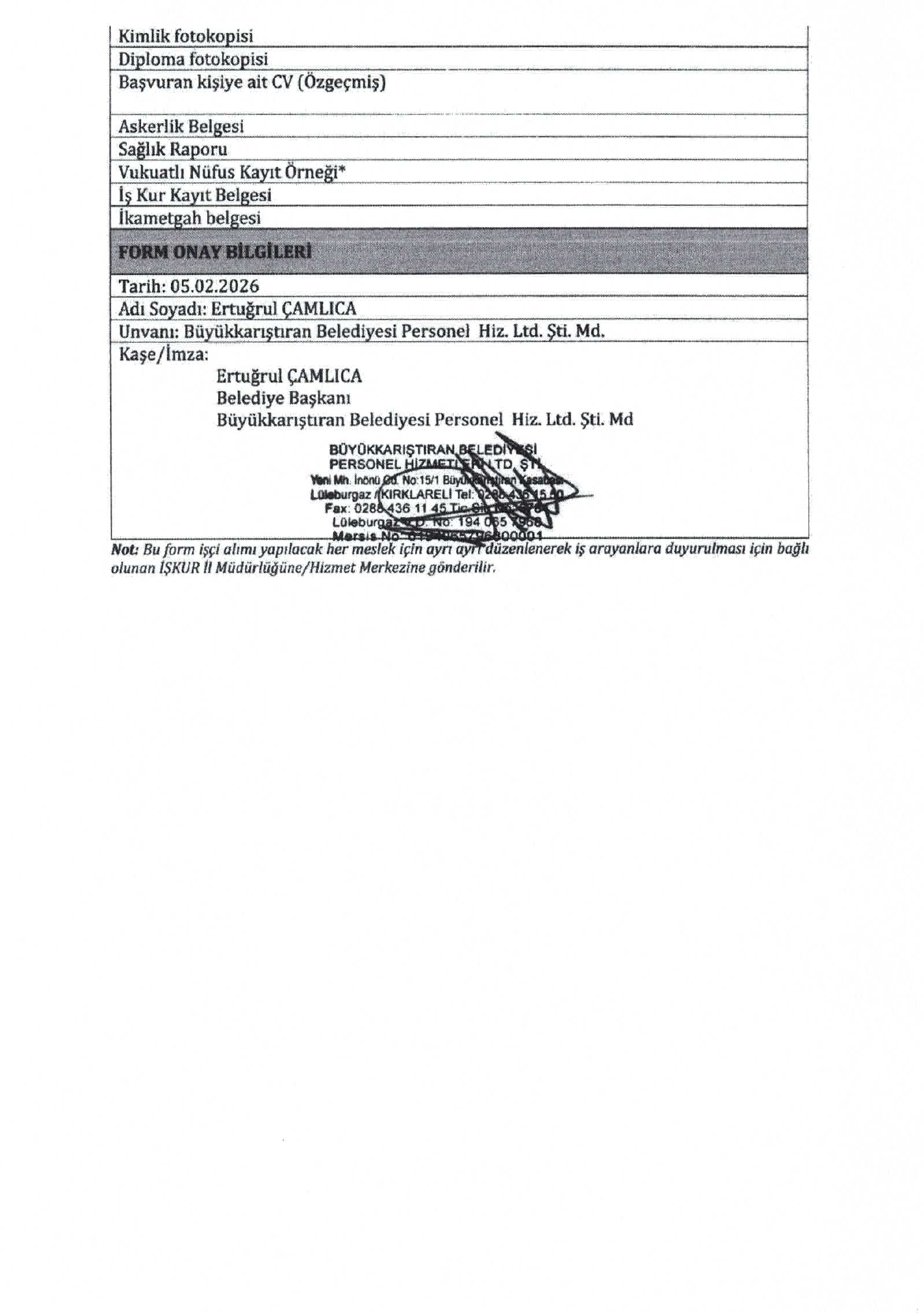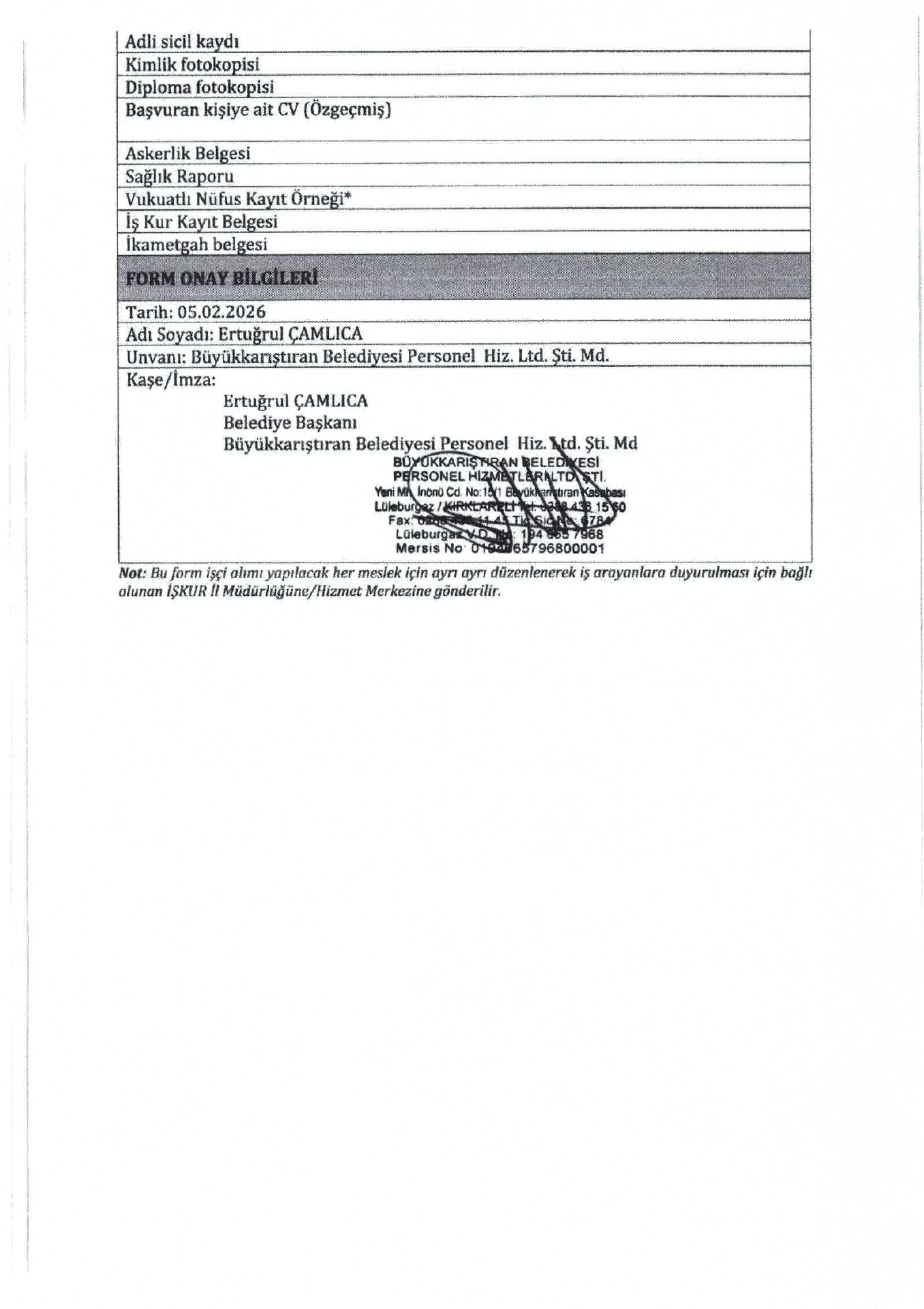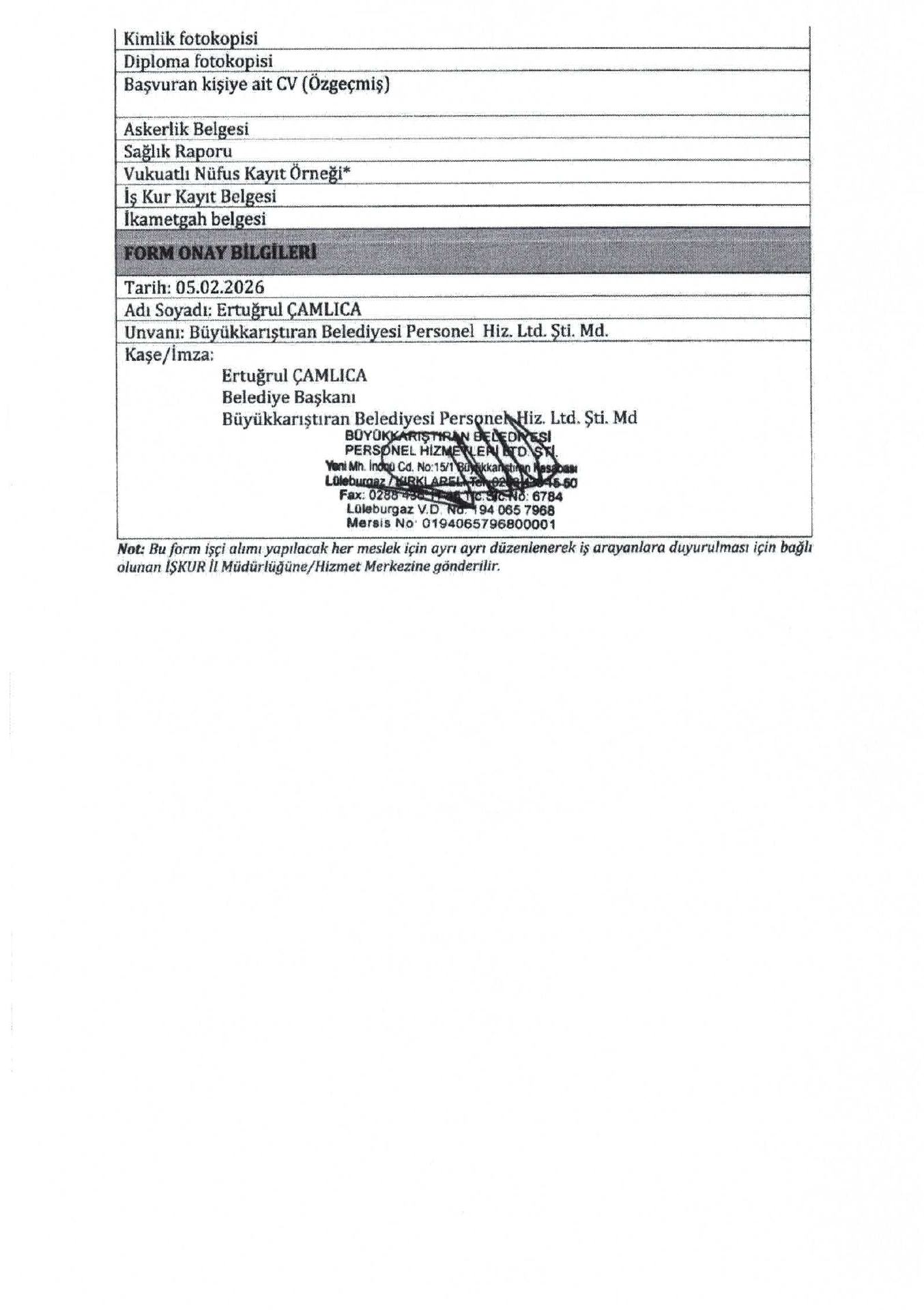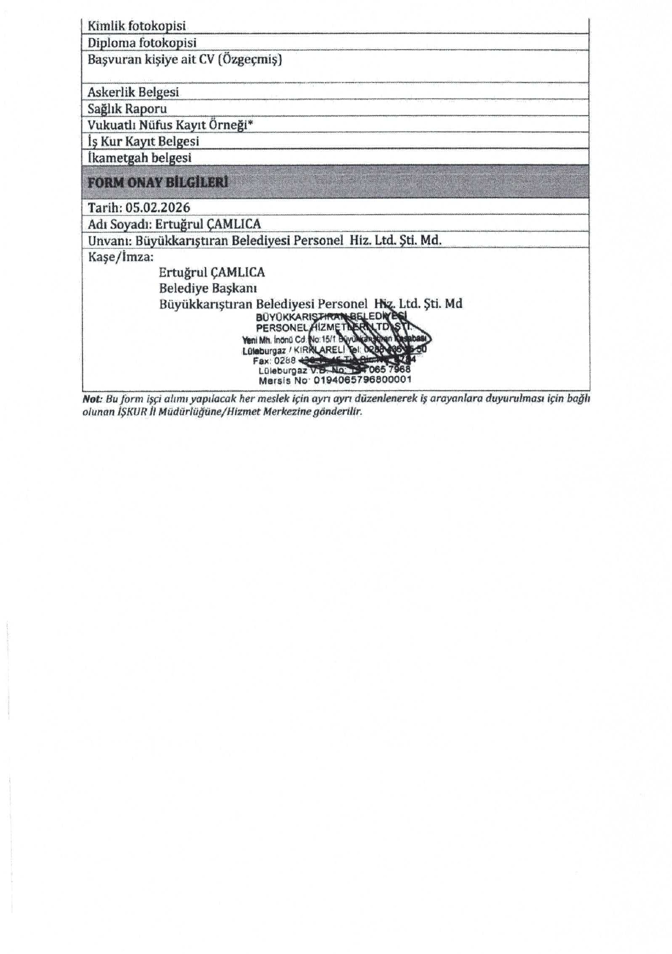 Ana sayfaDaimi İşçi İlanları Kırklareli Büyükkarıştıran Belediyesi 14 İşçi Alacak Kırklareli Büyükkarıştıran Belediyesi 14 İşçi Alacak. Son başvuru tarihi 13 Şubat 2026 Kaynak : İşkur İlan Giriş : 09 Şubat 2026 22:35, Son Güncelleme : 09 Şubat 2026 23:18 Yazdır Yorumlar (0) Abone Ol