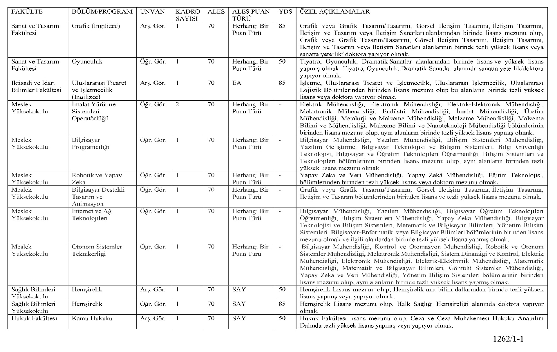 2547 Sayılı Yükseköğretim Kanununda belirtilen koşullar ile 09.1 1.2018 Tarihli 30590 Sayılı Resmi Gazete'de yayımlanan "'Öğretim IJyesi Dışındaki Öğretim Elemanı Kadrolarına Yapılacak Atamalarda Uygulanacak Merkezi Sınav ile Giriş Sınavlarına İlişkin Usul ve Esaslar Hakkında Yönetmelik" Hükümleri ve 1 7Nisan2020 Tarih ve 31102 Sayılı Resmi Gazete'de yayımlanan "Yükseköğretim Kanunu İle Bazı Kanunlarda Değişiklik Yapılmasına Dair Kanun" maddesi uyarınca, ÖĞRETİM GÖREVLİSİ ve ARAŞTIRMA GÖREVLİSİ alma çaktır.