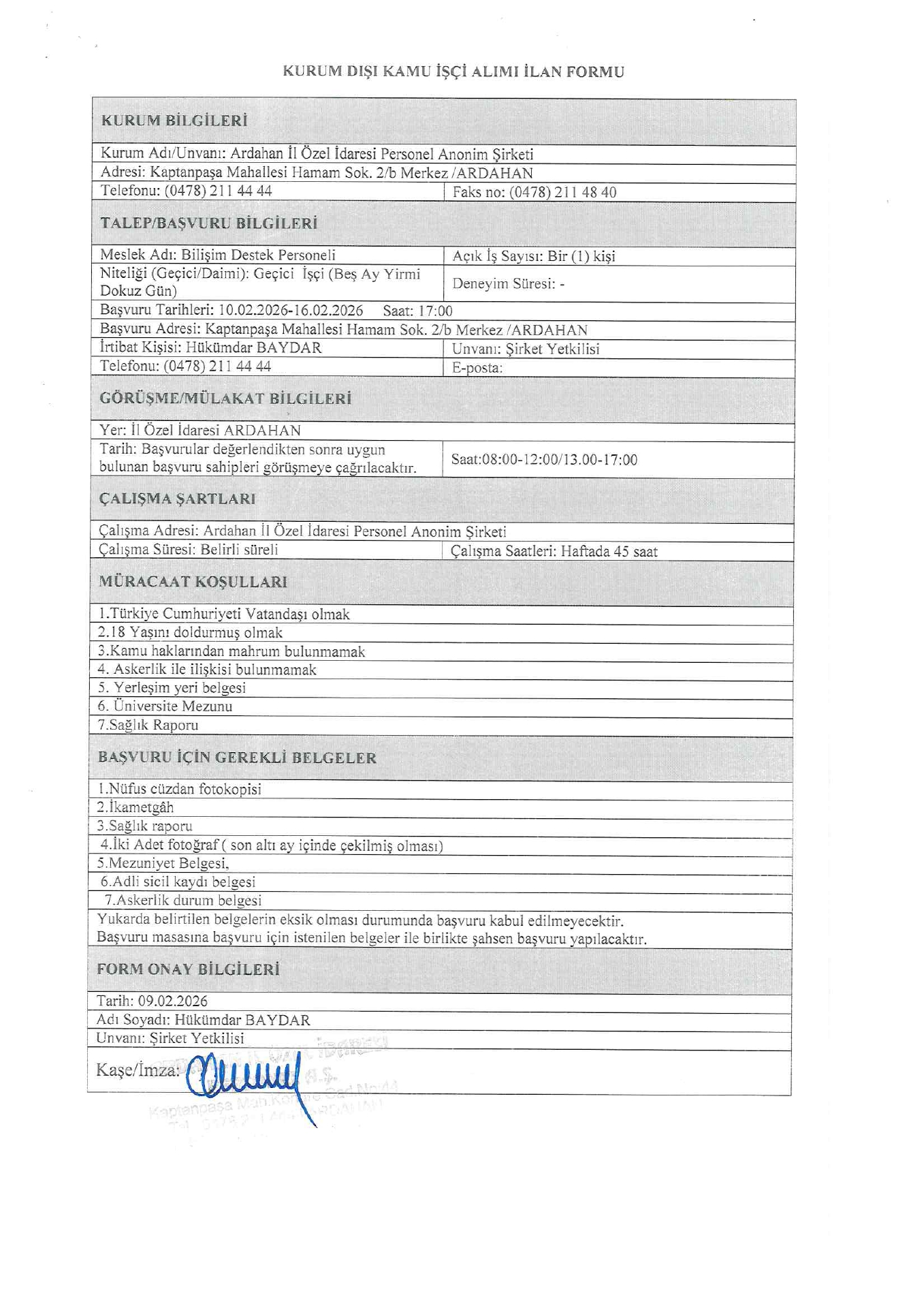 İlan Giriş : 10 Şubat 2026 22:00, Son Güncelleme : 10 Şubat 2026 22:08
