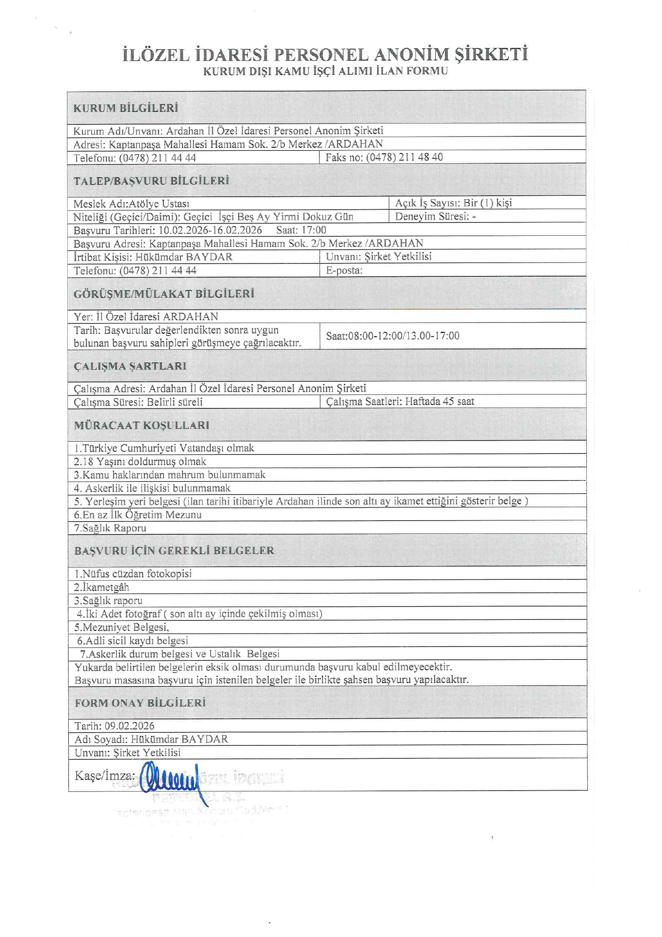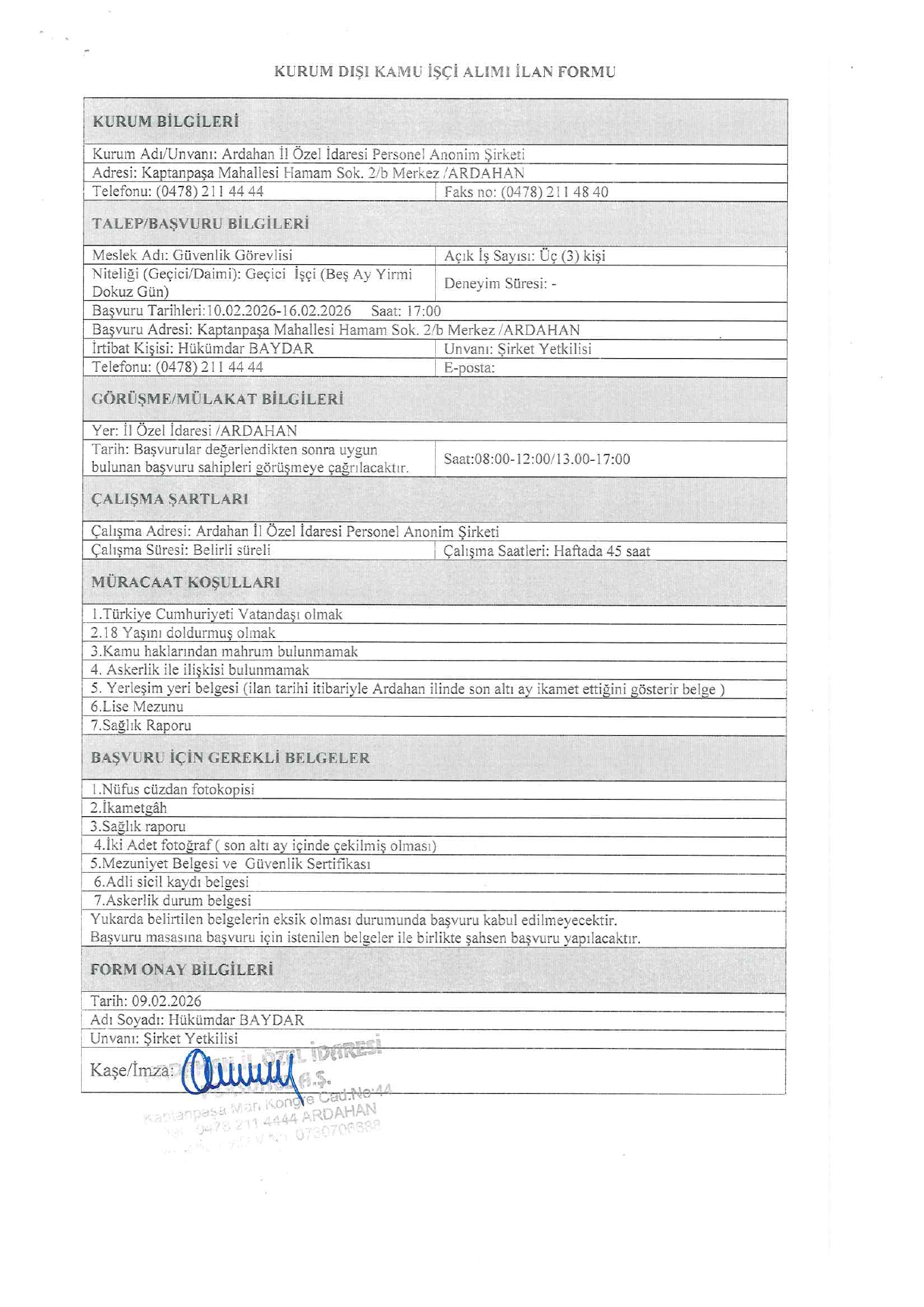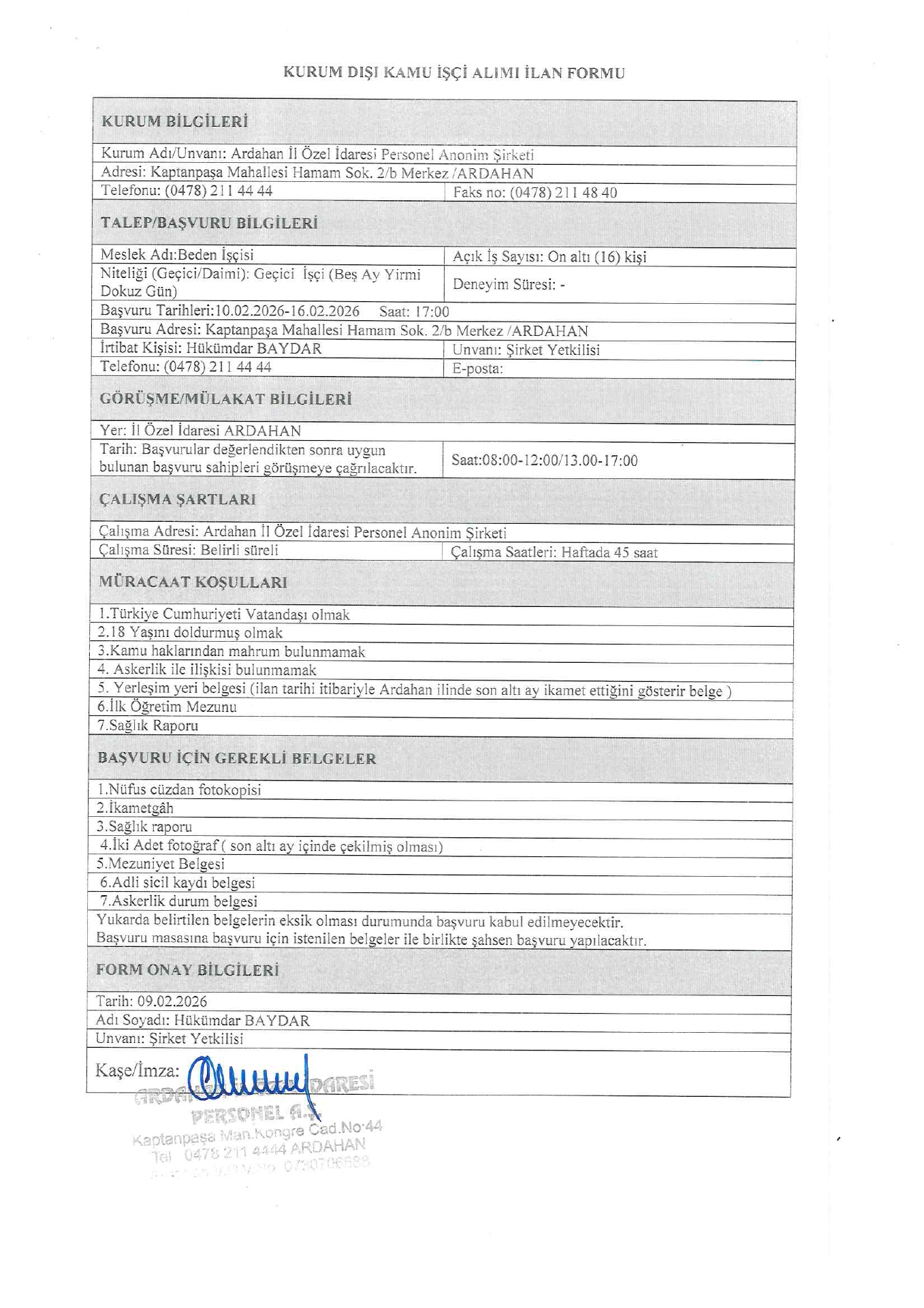 Ardahan İl Özel İdaresi Geçici 39 İşçi Alacak. Son başvuru tarihi 16 Şubat 2026