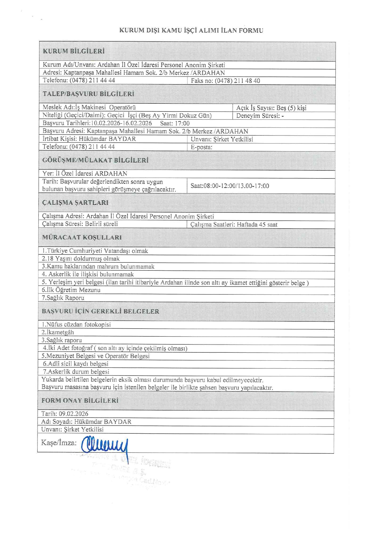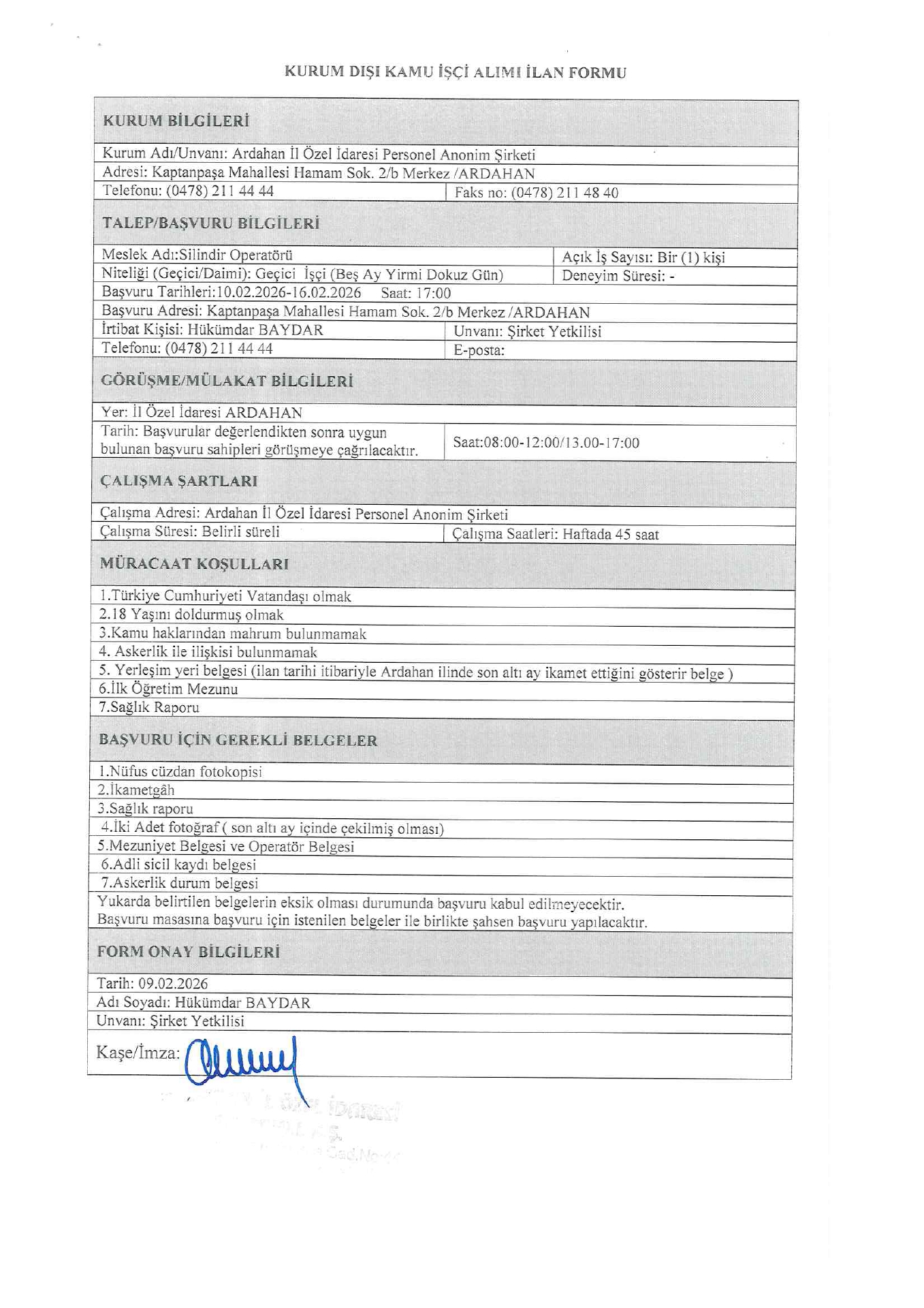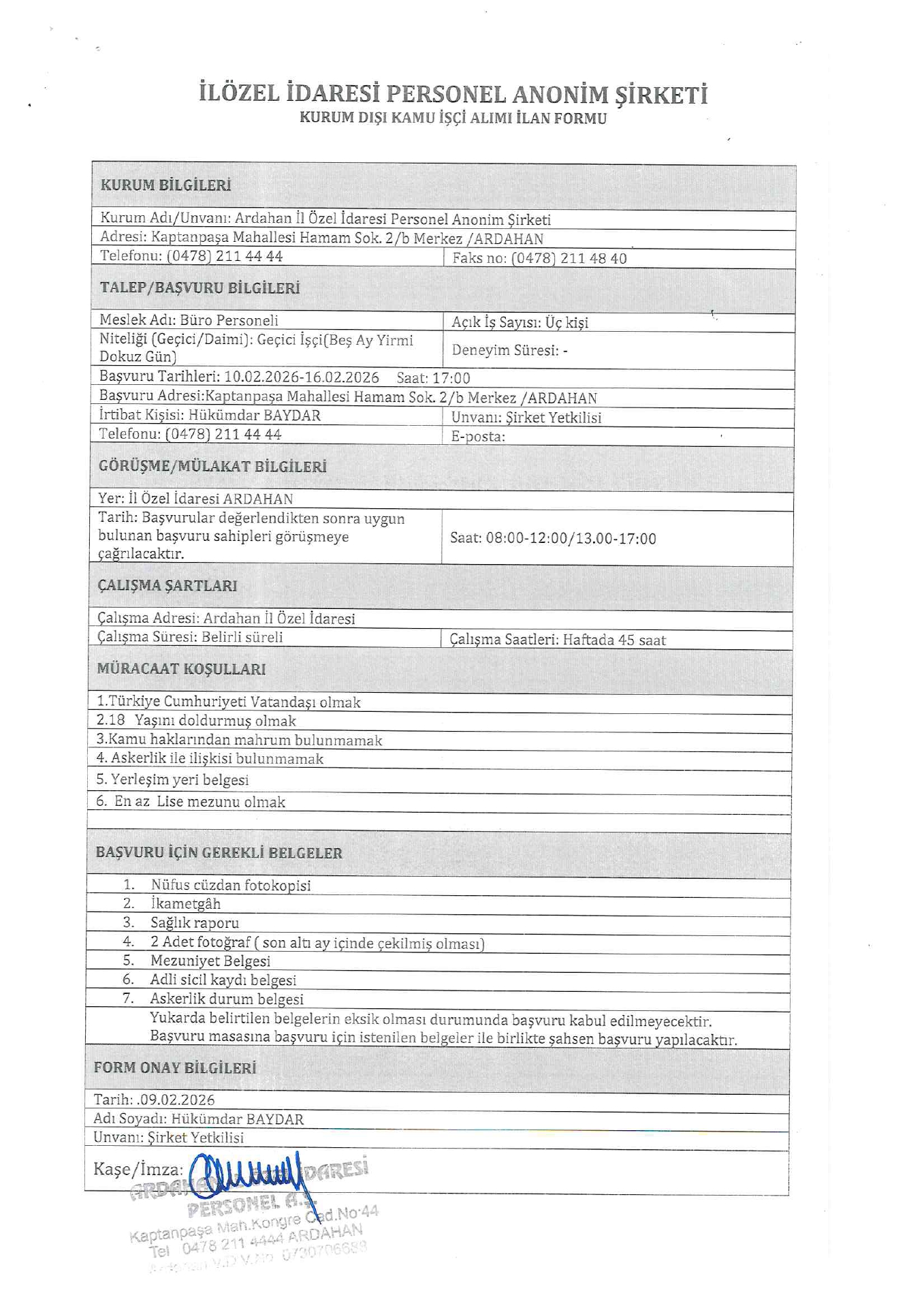 Ardahan İl Özel İdaresi Geçici 39 İşçi Alacak. Son başvuru tarihi 16 Şubat 2026