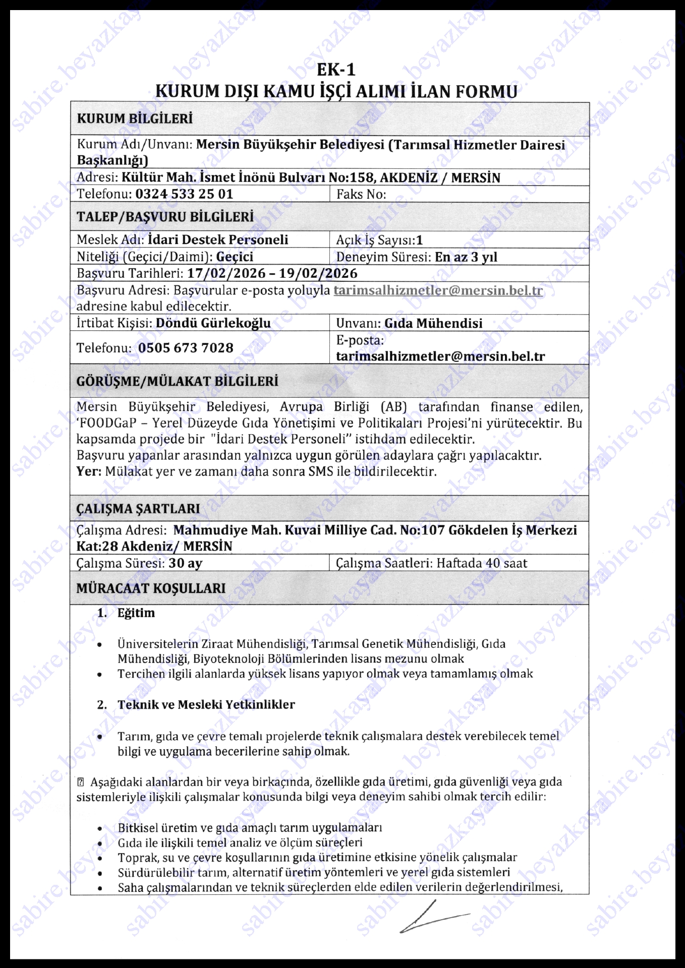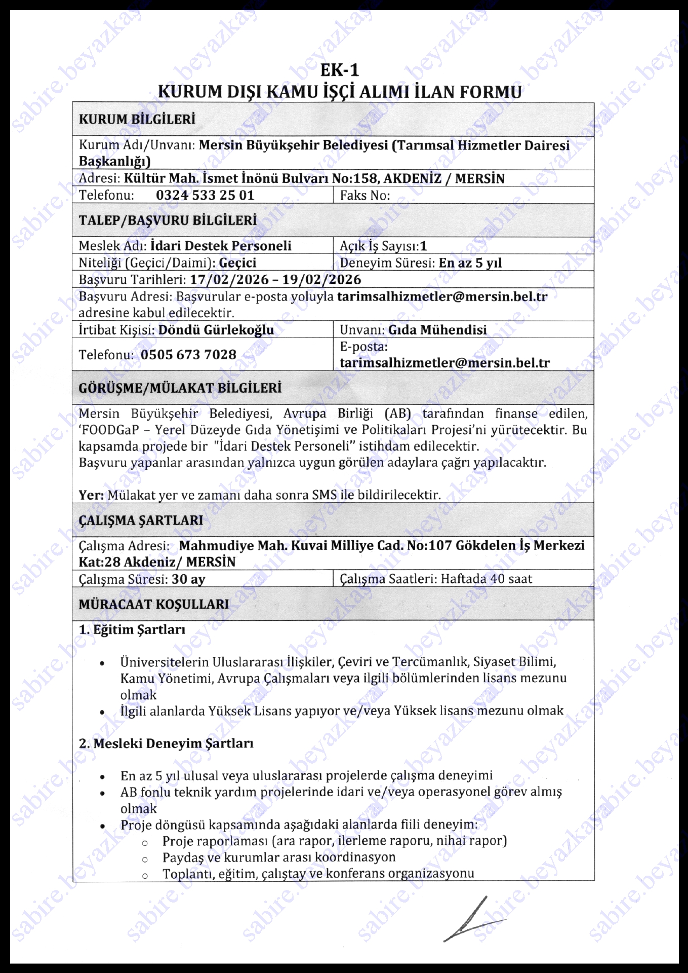 Ana sayfaGeçici İşçi İlanları Mersin Büyükşehir Belediyesi Geçici 2 İşçi Alacak Mersin Büyükşehir Belediyesi Geçici 2 İşçi Alacak. Son başvuru tarihi 19 Şubat 2026 Kaynak : İşkur İlan Giriş : 16 Şubat 2026 23:15, Son Güncelleme : 16 Şubat 2026 23:26 Yazdır Yorumlar (0) Abone Ol