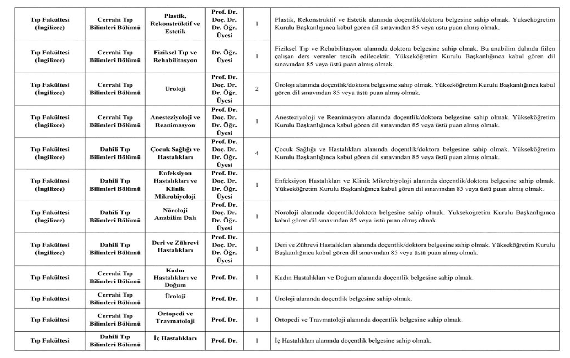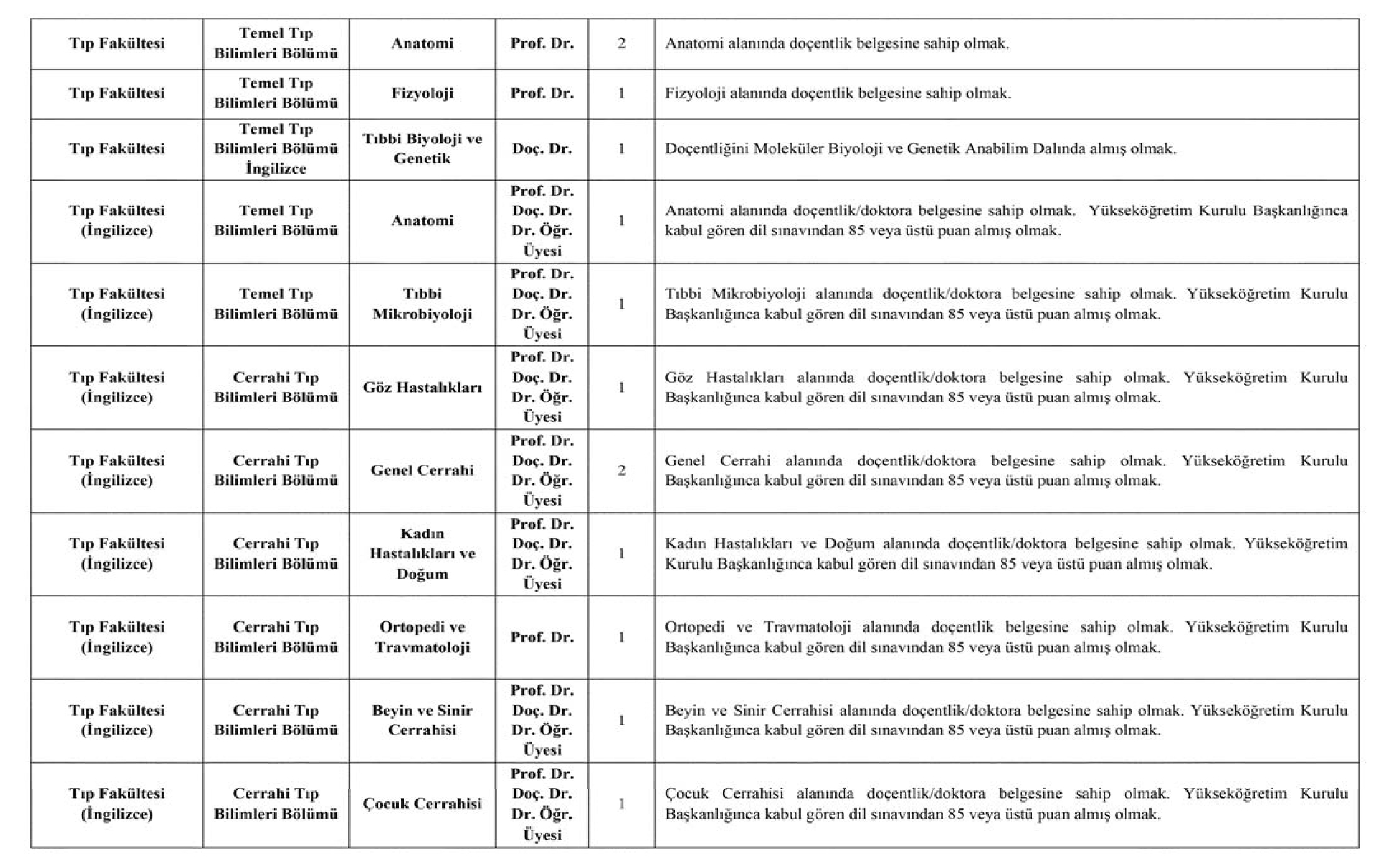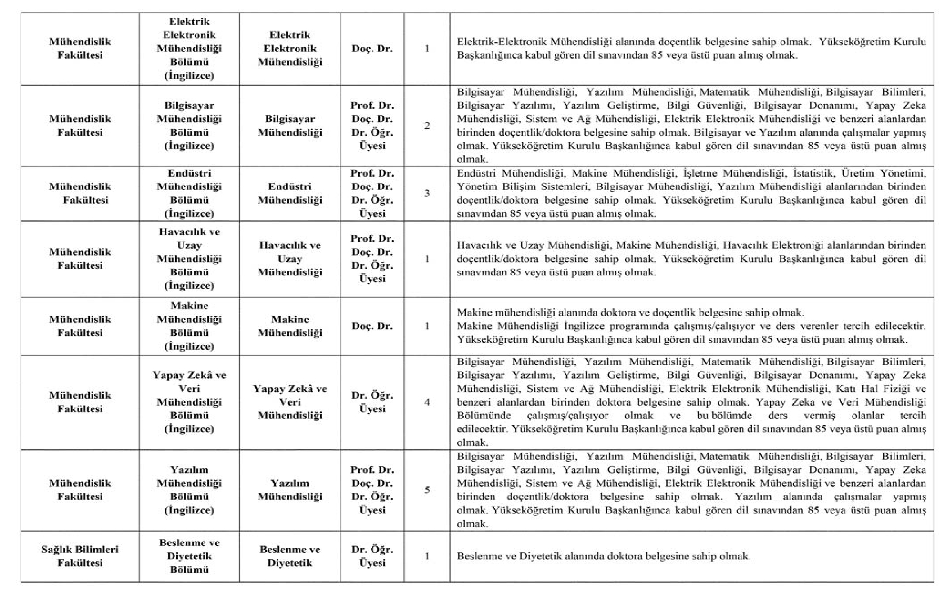 - Profesör ve Doçent kadrolarına müracaat edecek adaylar Dilekçe ve özgeçmiş ekinde Doçentlik Belgesi ve bilimsel yayın ve çalışmalarını CD veya Flash Bellek ile birlikte Rektörlük Personel Daire Başkanlığına, Dr. Öğr. Üyesi kadrolarına müracaat edecek adaylar ise ilgili Fakülte Dekanlıklarına CD veya Flash Bellek ile birlikte şahsen veya posta aracılığı ile müracaat edeceklerdir.