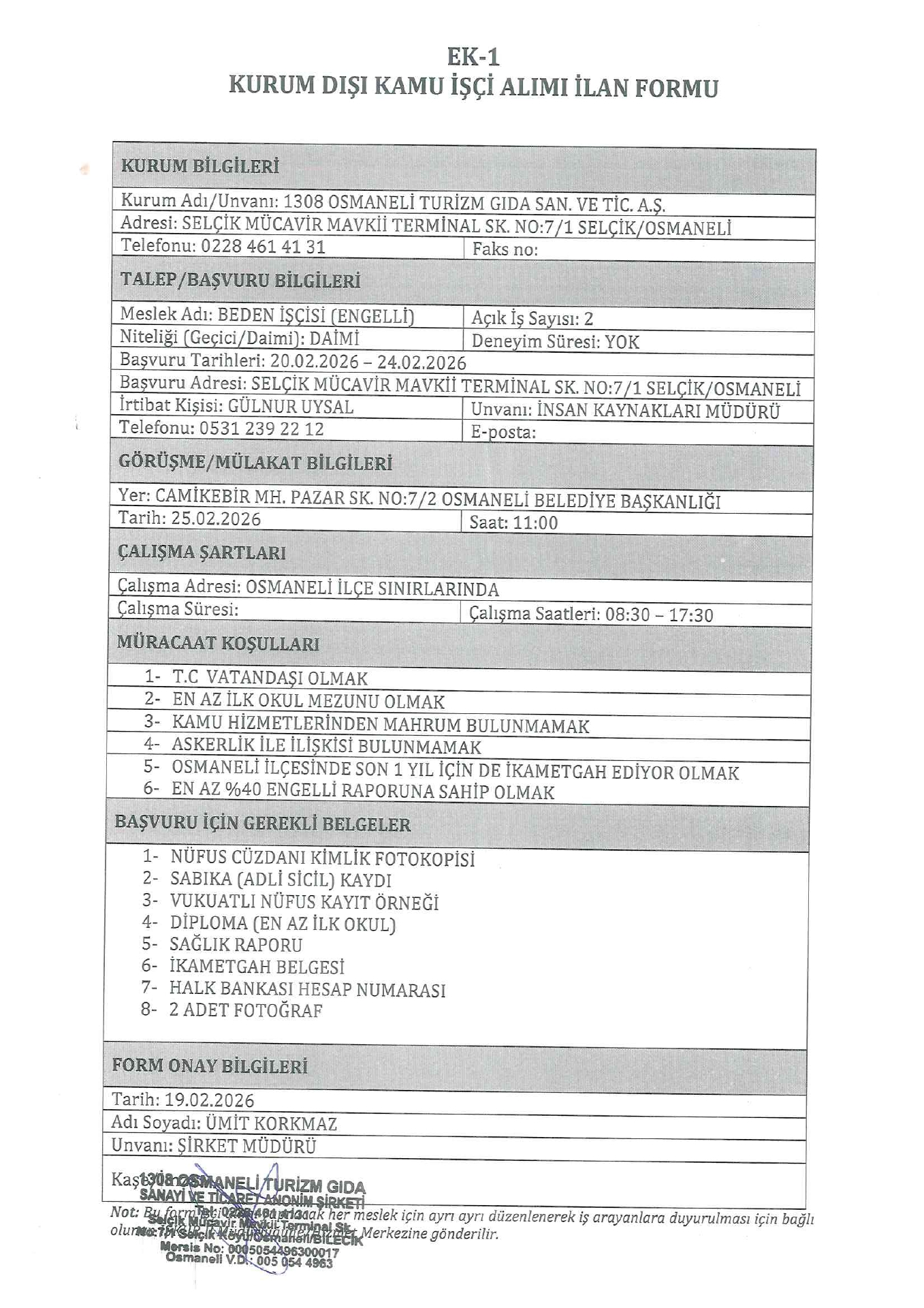 Ana sayfaDaimi İşçi İlanları 1380 Osmaneli Turizm 2 İşçi Alacak 1380 Osmaneli Turizm 2 İşçi Alacak. Son başvuru tarihi 24 Şubat 2026 Kaynak : İşkur İlan Giriş : 20 Şubat 2026 23:27, Son Güncelleme : 21 Şubat 2026 02:51 Yazdır Yorumlar (0) Abone Ol