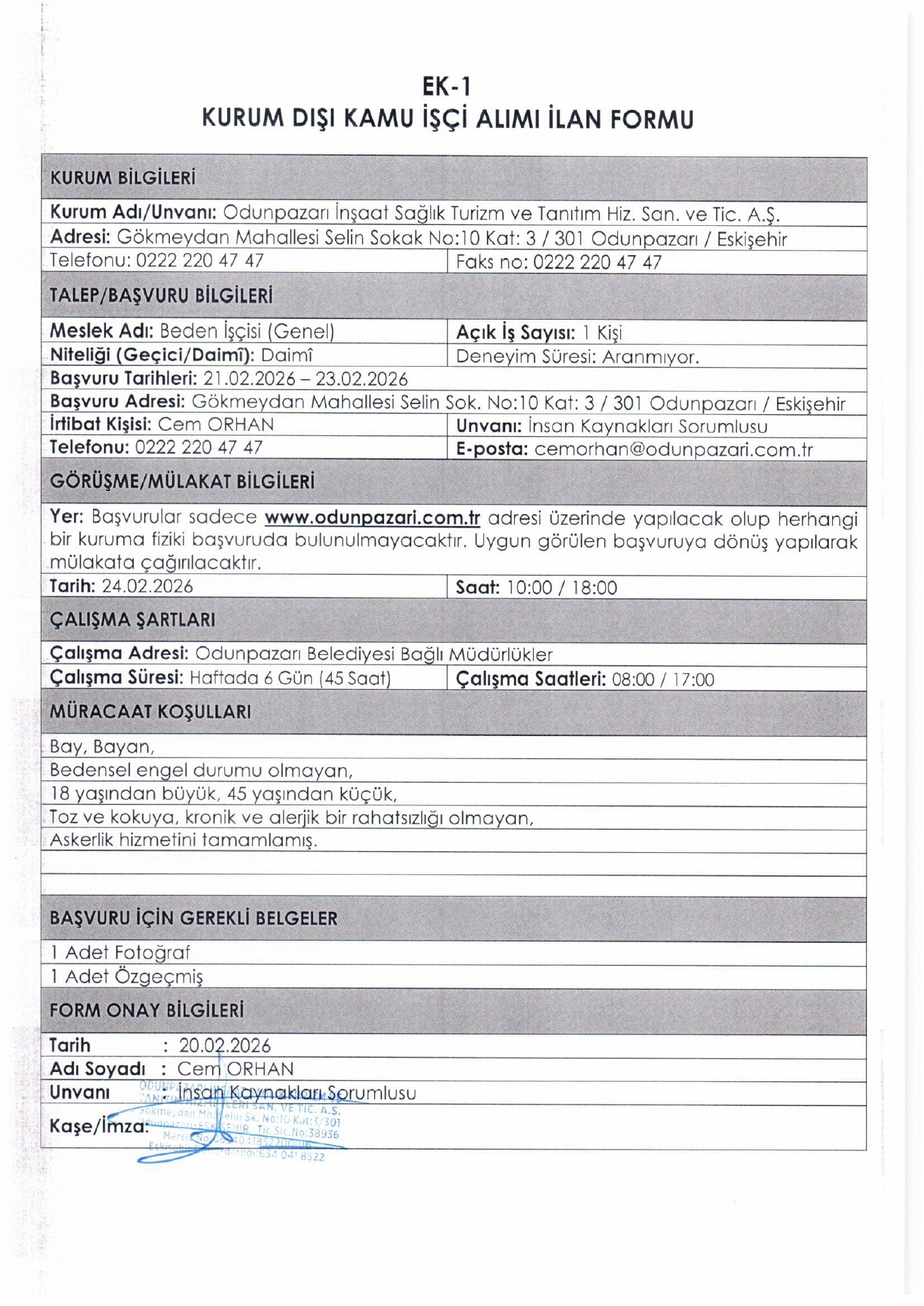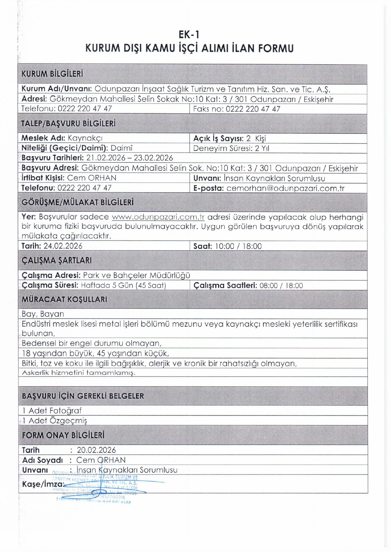 Eskişehir Odunpazarı İnşaat 6 İşçi Alacak. Son başvuru tarihi 23 Şubat 2026