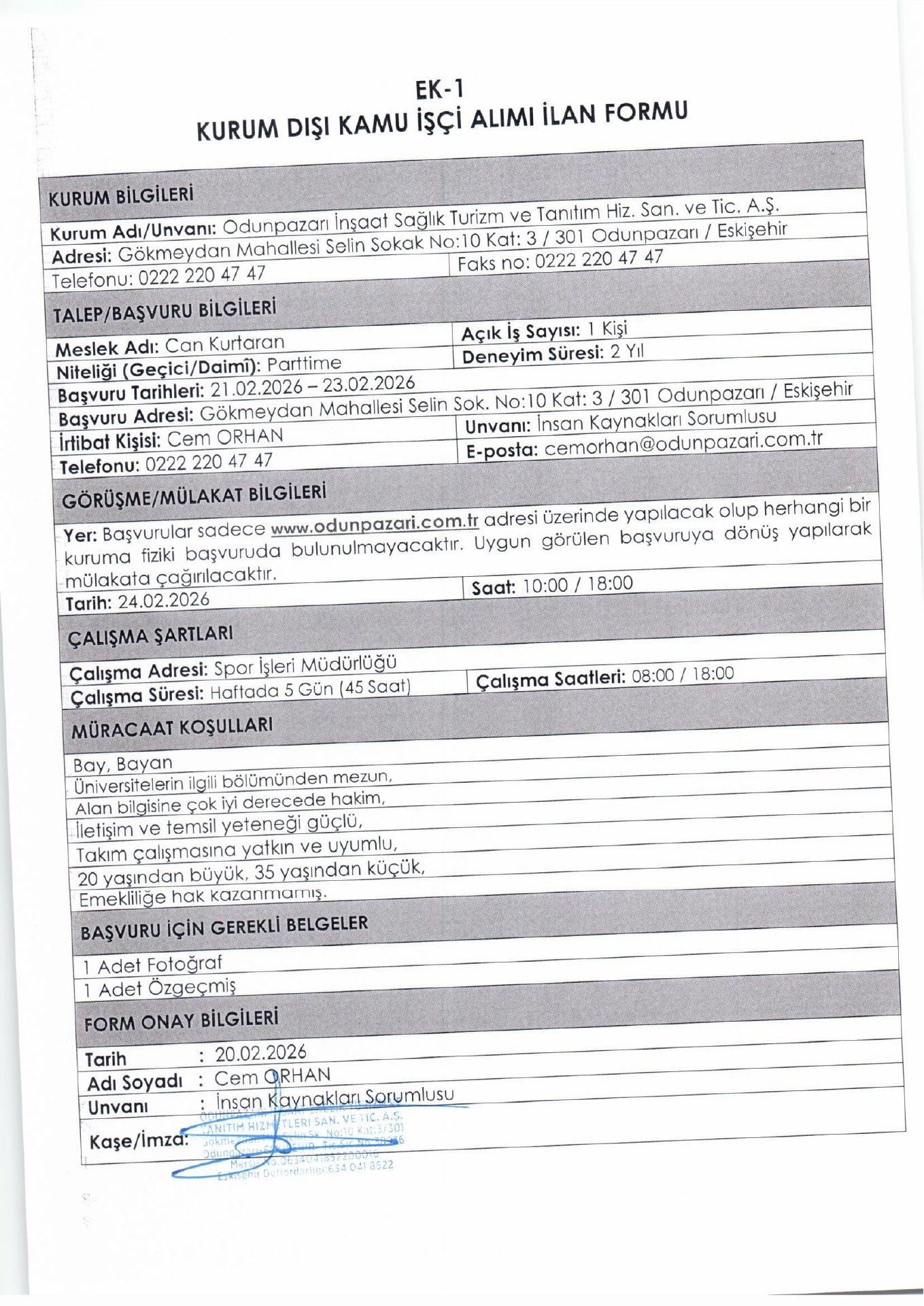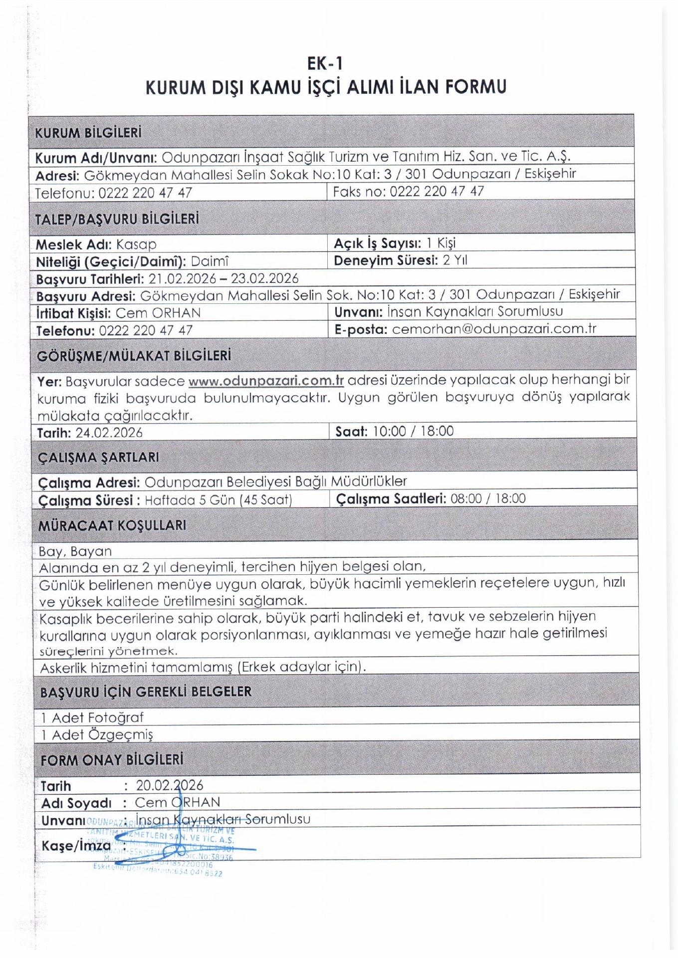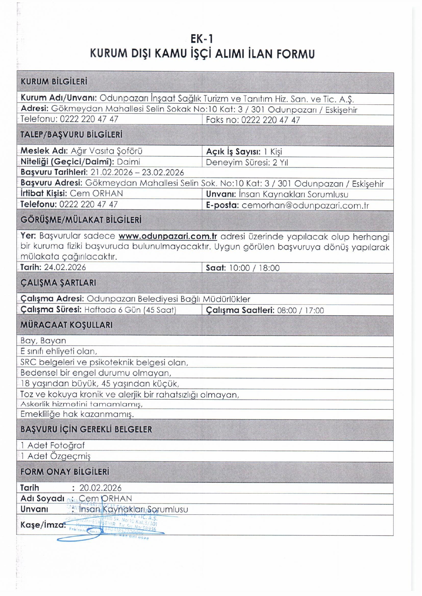 İlan Giriş : 21 Şubat 2026 00:03, Son Güncelleme : 21 Şubat 2026 02:44