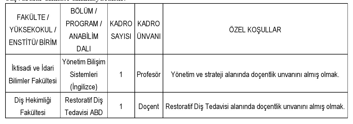 Doçent Kadrosuna Başvuracaklar;