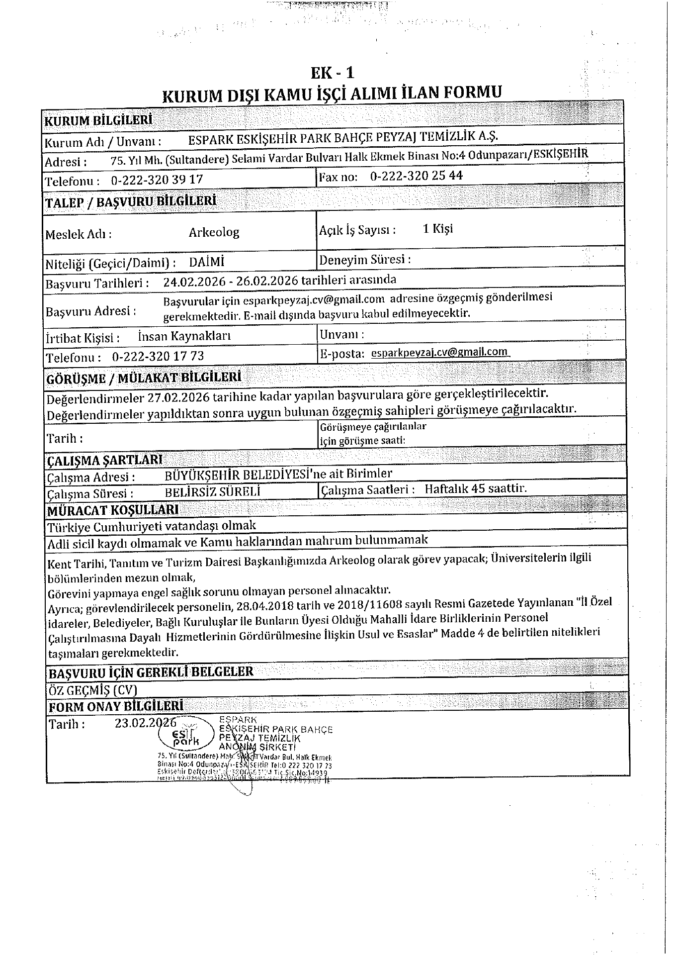 Ana sayfaDaimi İşçi İlanları Eskişehir Espark 1 İşçi Alacak Eskişehir Espark 1 İşçi Alacak. Son başvuru tarihi 26 Şubat 2026 Kaynak : İşkur İlan Giriş : 23 Şubat 2026 23:13, Son Güncelleme : 23 Şubat 2026 23:47 Yazdır Yorumlar (0) Abone Ol
