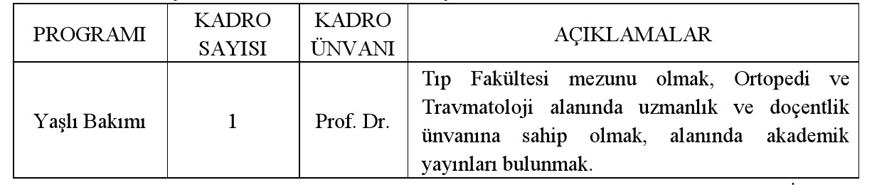 PROFESÖR KADROSU İÇİN İSTENİLEN BELGELER