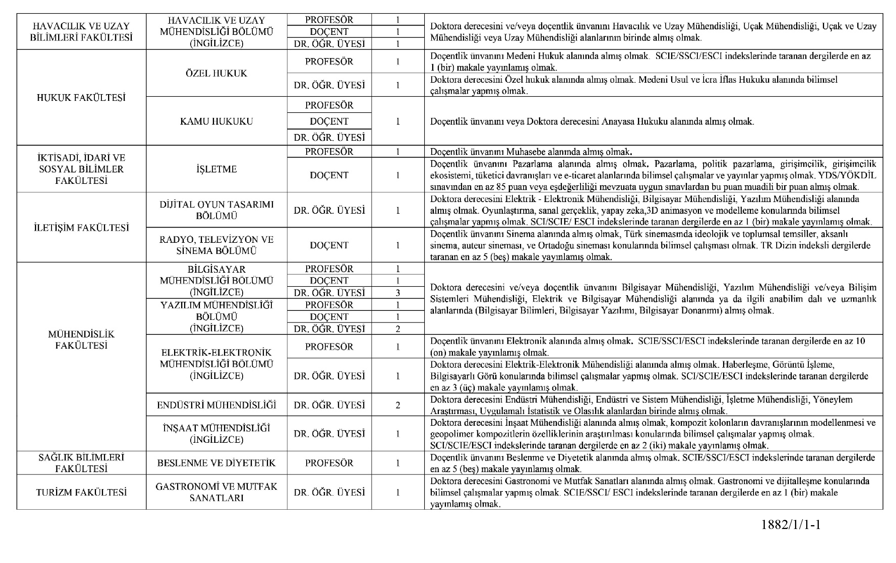 . Adayların, ilan tablosunda 'Açıklama' sütununda belirtilen şartlan sulamaları gerekmektedir.