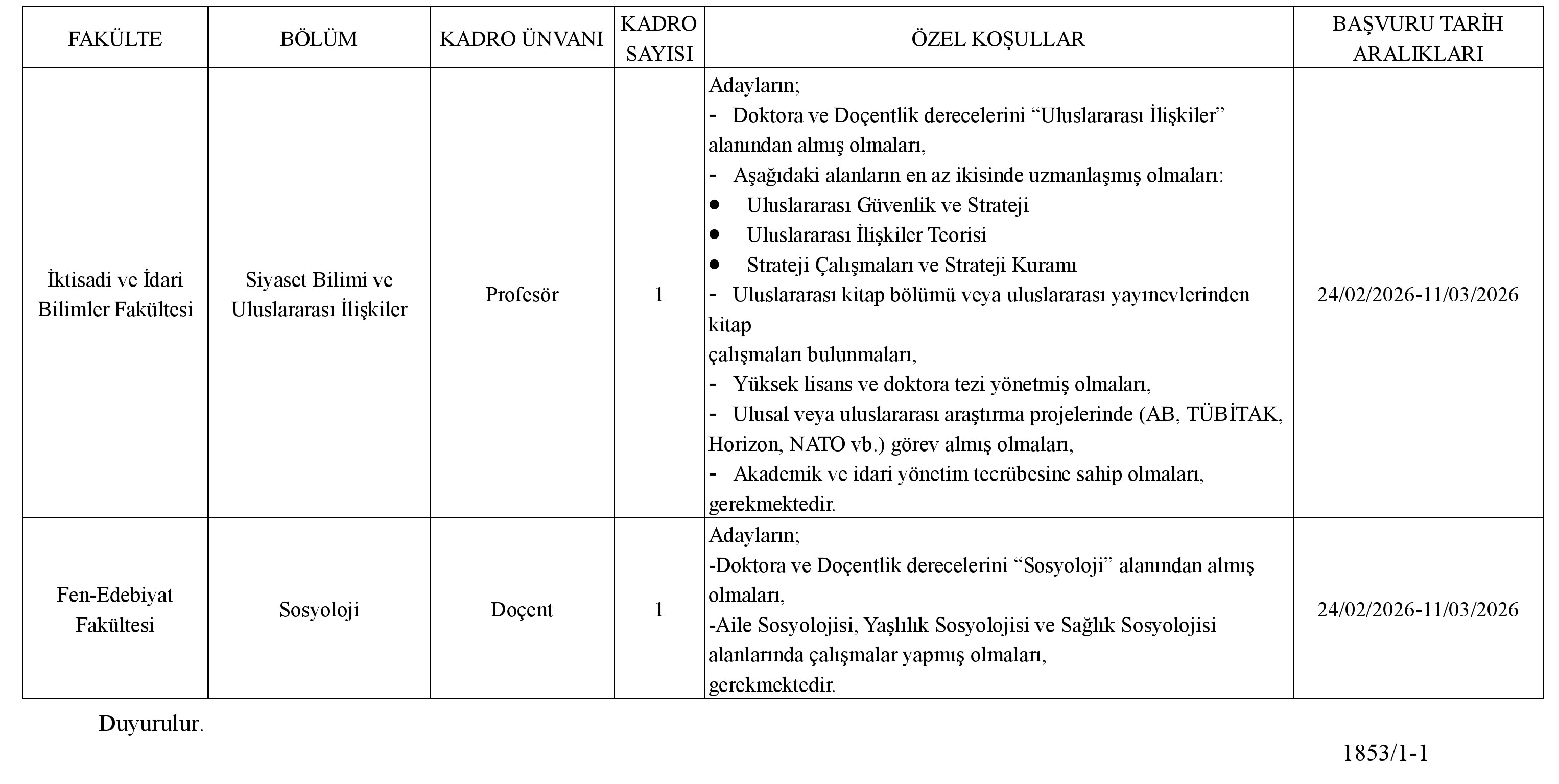 ÖĞRETİM ÜYESİ ALIM İLANI