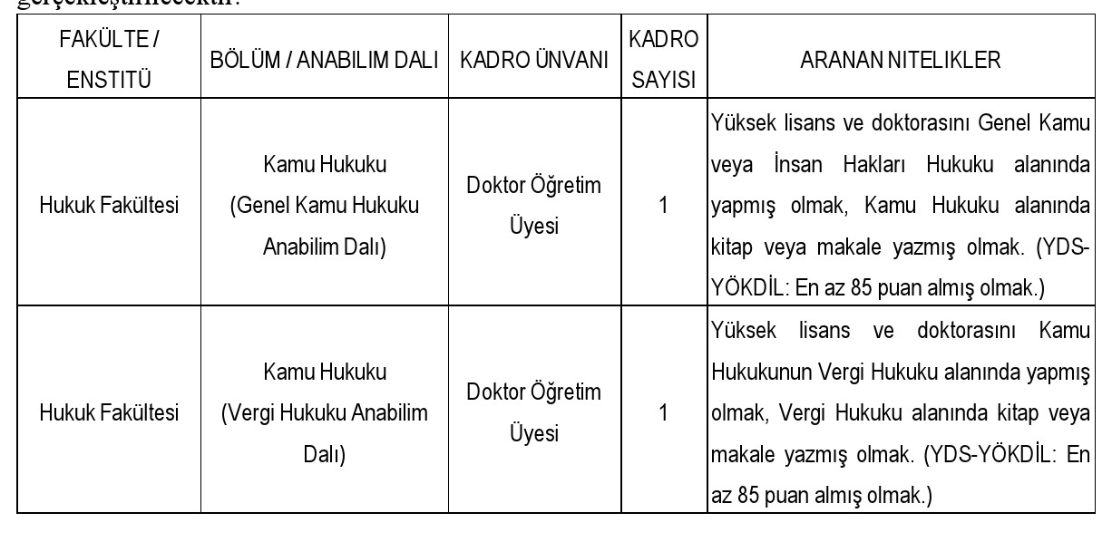 ÖĞRETİM ÜYESİ ALIM İLANI
