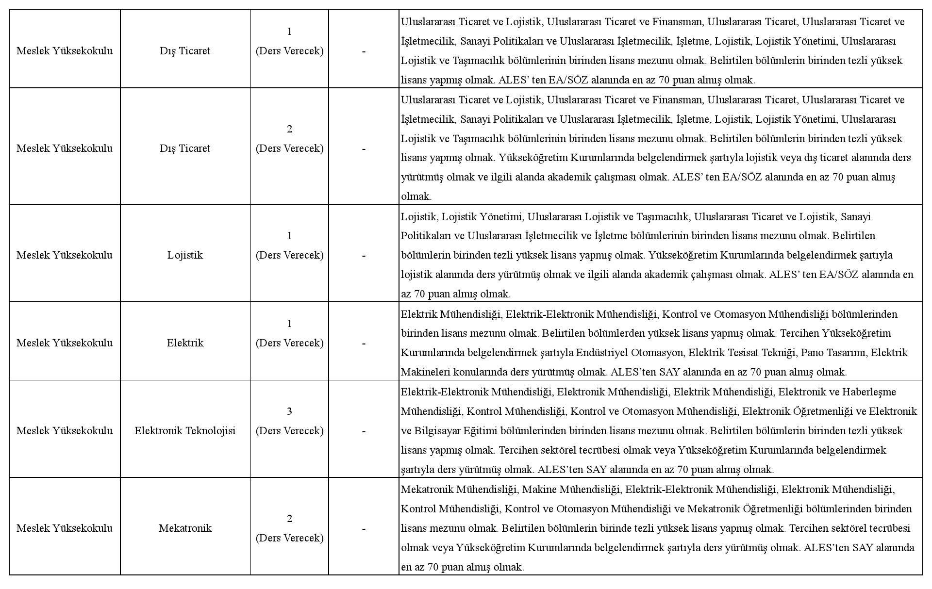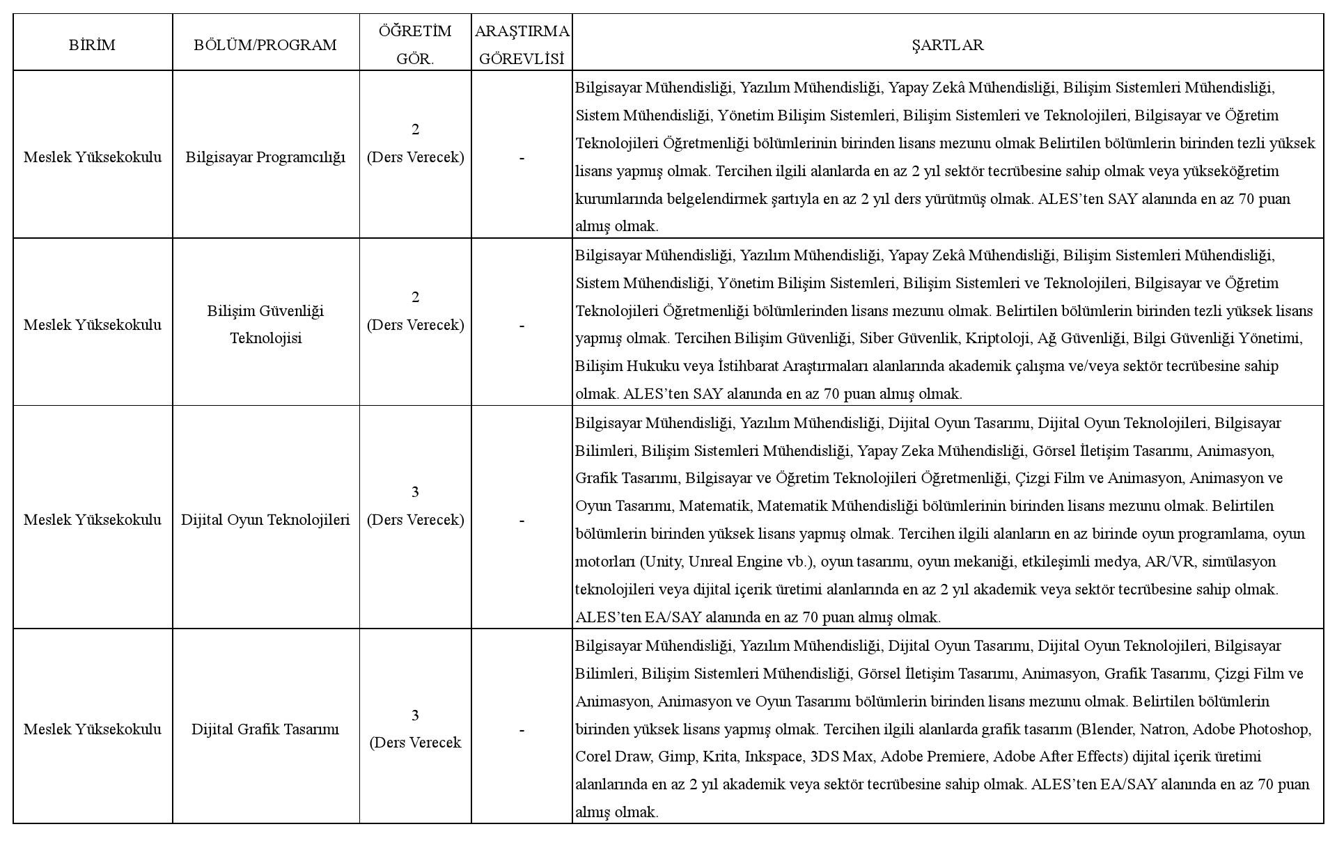 Öğretim Görevlisi ve Araştırma Görevlisi alım ilanımız için;