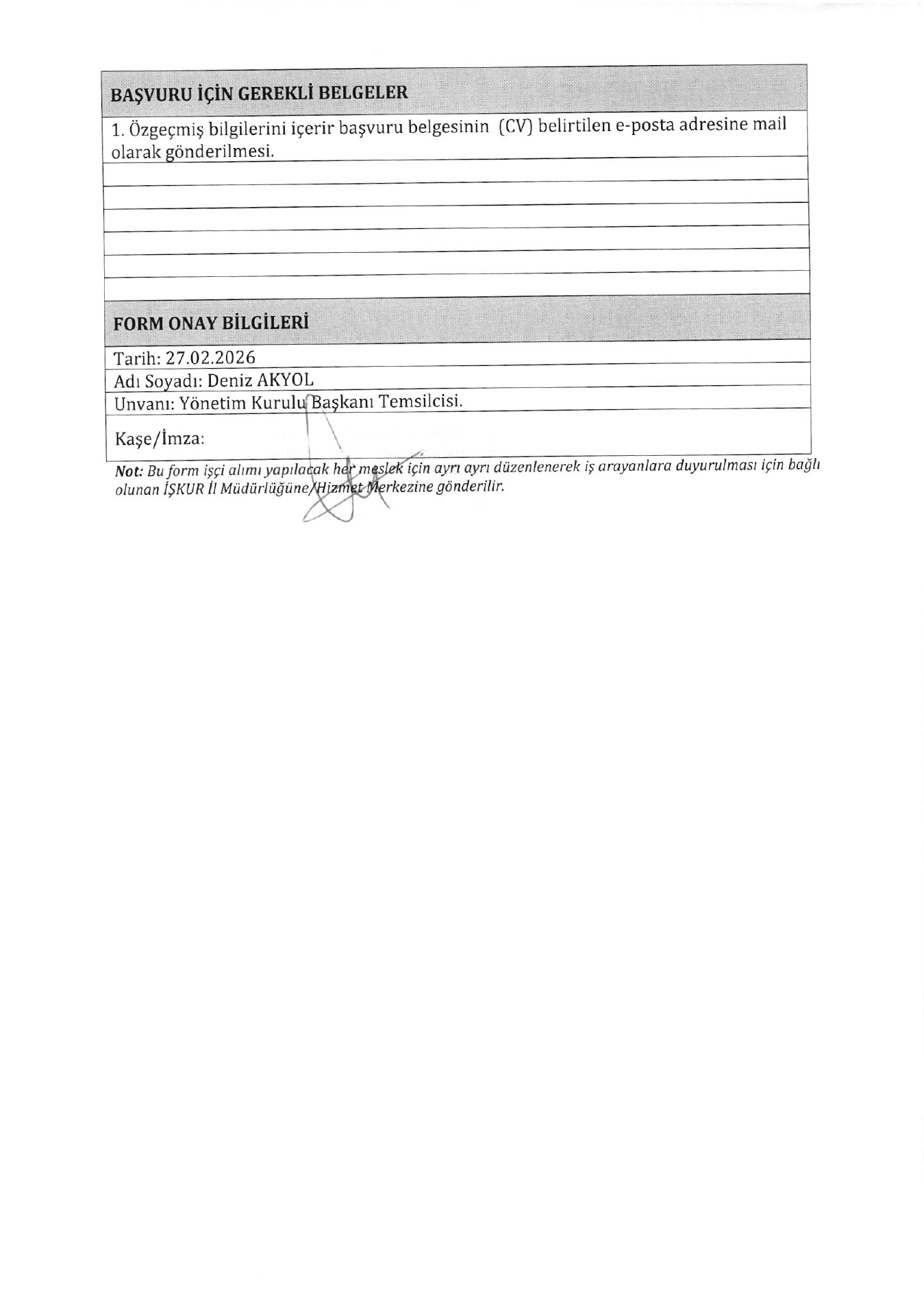 Ana sayfaDaimi İşçi İlanları İzmir Bakırçay Madencilik 2 İşçi Alacak İzmir Bakırçay Madencilik 2 İşçi Alacak. Son başvuru tarihi 8 Mart 2026 Kaynak : İşkur İlan Giriş : 04 Mart 2026 22:55, Son Güncelleme : 04 Mart 2026 22:54 Yazdır Yorumlar (0) Abone Ol