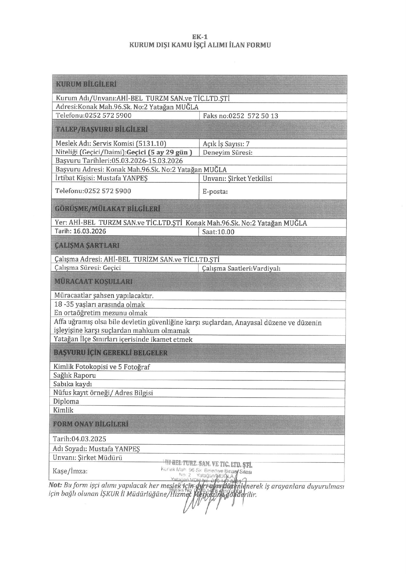 Muğla Ahi-Bel Geçici 13 İşçi Alacak