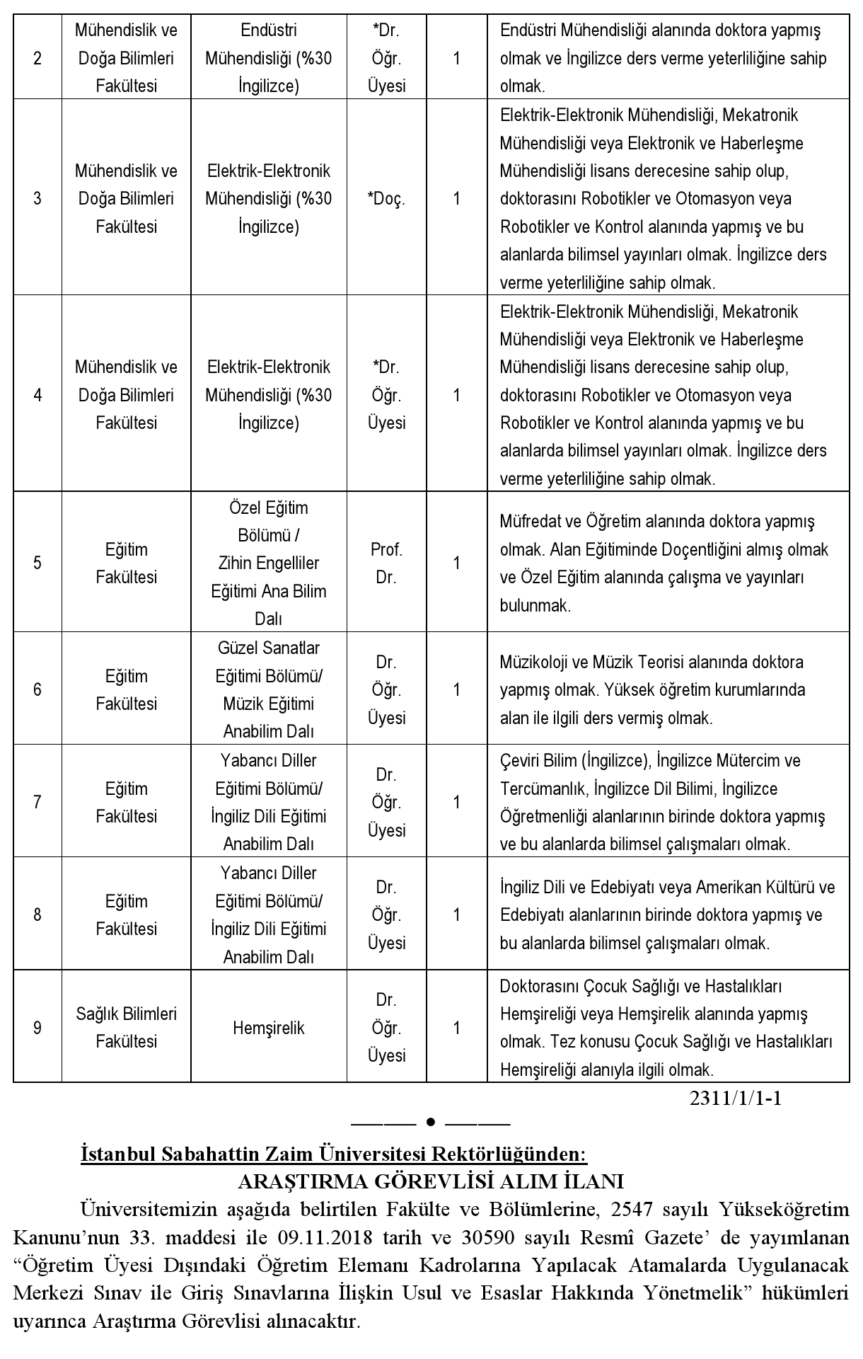 İstanbul Sabahattin Zaim Üniversitesi Rektörlüğünden: