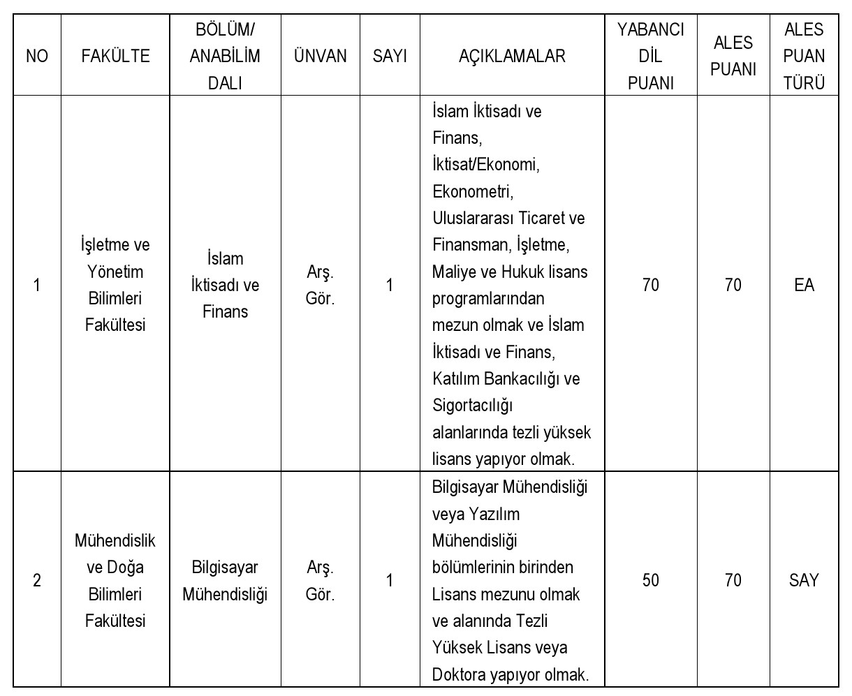 Üniversitemizin aşağıda belirtilen fakülte ve bölümlerine, 2547 sayılı Yükseköğretim Kanunu'nun 23, 24 ve 26. maddeleri ile 12.06.2018 tarihli Resmi Gazete'de yayımlanan "Öğretim Üyeliğine Yükseltilme ve Atanma Yönetmeliğinin yürürlükteki ilgili maddelerine ve Üniversitemizin "Akademik Yükseltilme ve Atama Kriterlerine" göre öğretim üyesi alınacaktır.