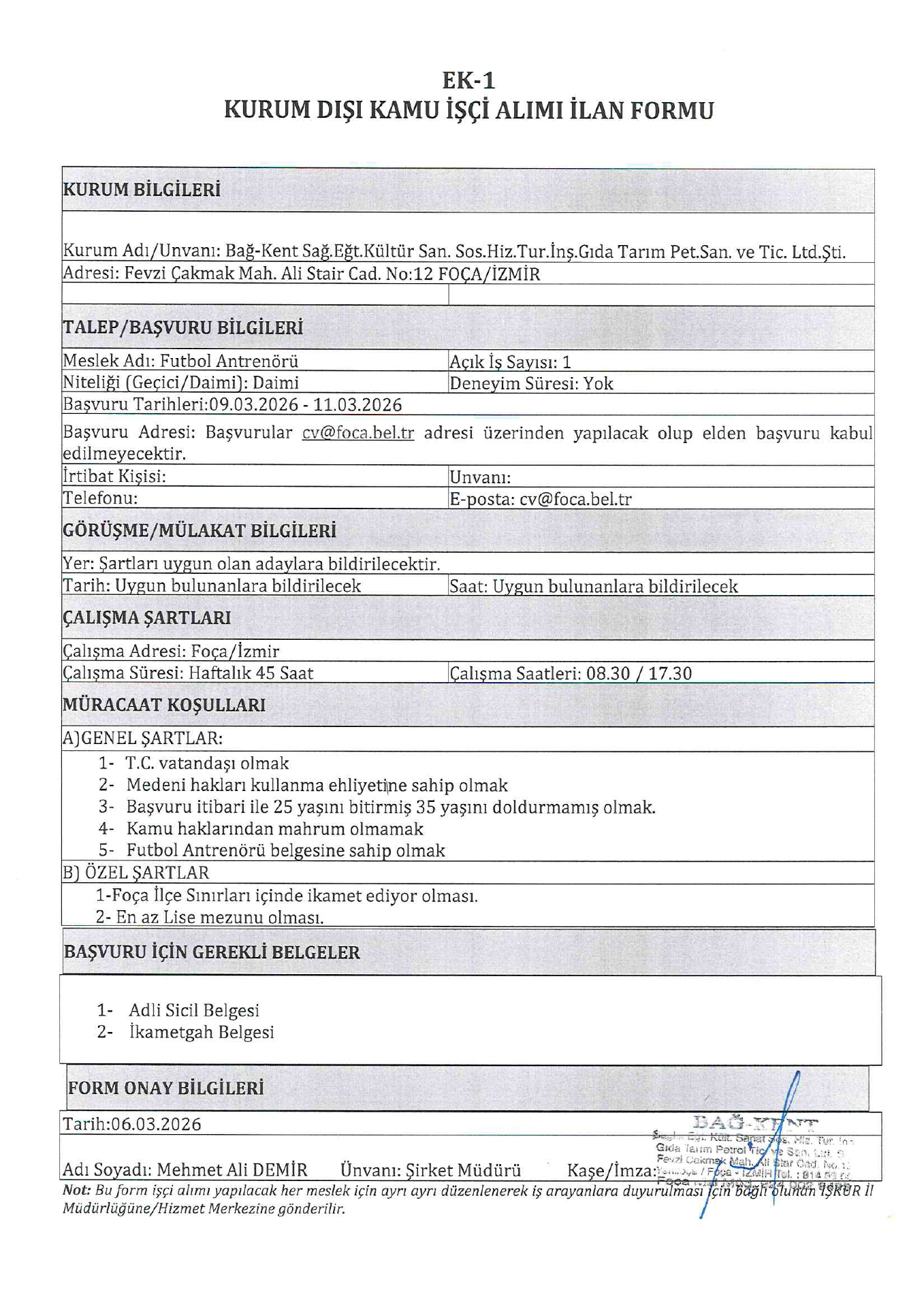 Ana sayfaDaimi İşçi İlanları İzmir Bağ-Kent 1 İşçi Alacak İzmir Bağ-Kent 1 İşçi Alacak. Son başvuru tarihi 11 Mart 2026 Kaynak : İşkur İlan Giriş : 06 Mart 2026 22:43, Son Güncelleme : 06 Mart 2026 23:06 Yazdır Yorumlar (0) Abone Ol