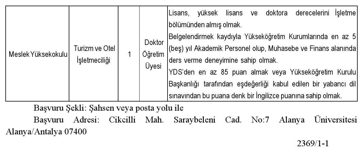 Alanya Üniversitesi Öğretim Üyesi Alım İlanı. Son başvuru tarihi 24 Mart 2026