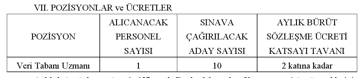 (1 kişi, Tam Zamanlı, Aylık Brüt Sözleşme Ücret Tavanının 2 katına kadar)