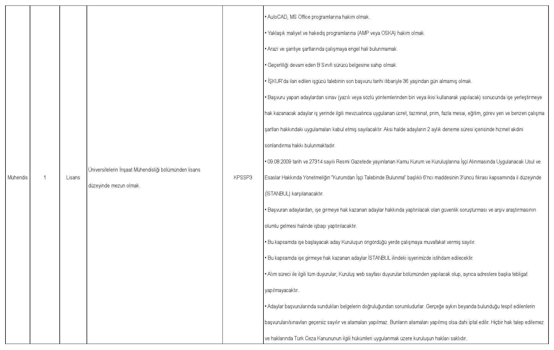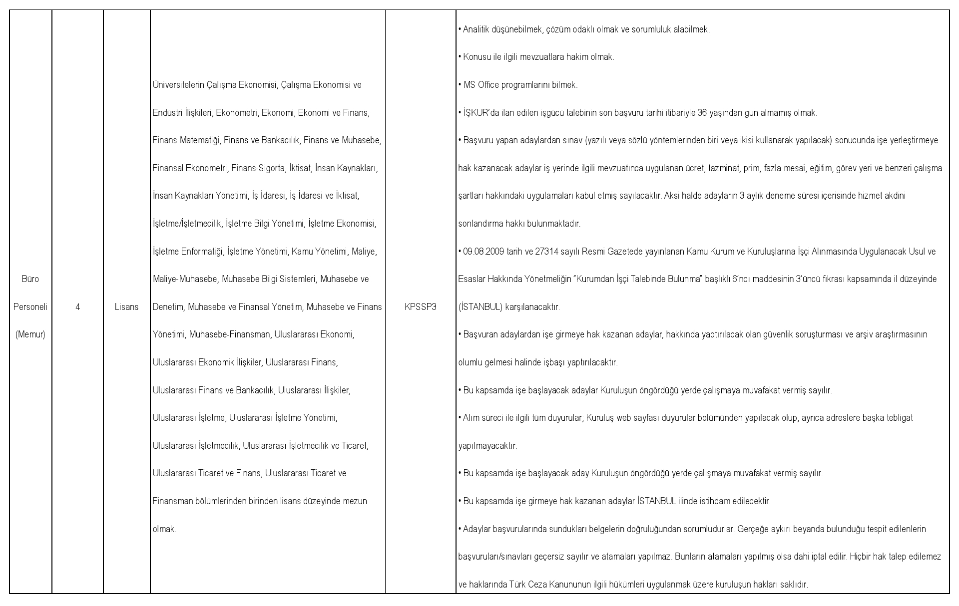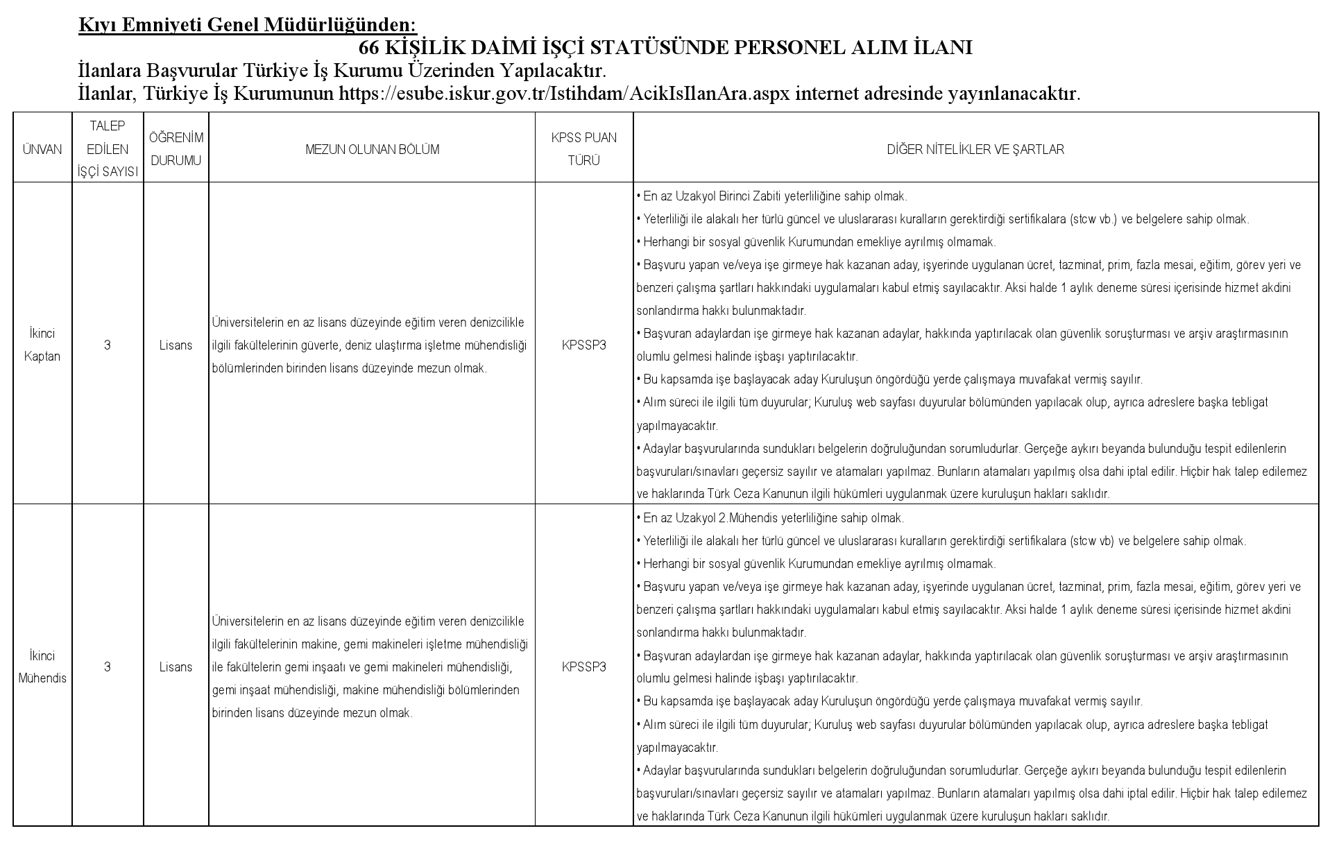 İlanlar, Türkiye İş Kurumunun https://esube.iskur.gov.tr/Istihdam/AcikIsIlanAra.aspx internet adresinde yayınlanacaktır.