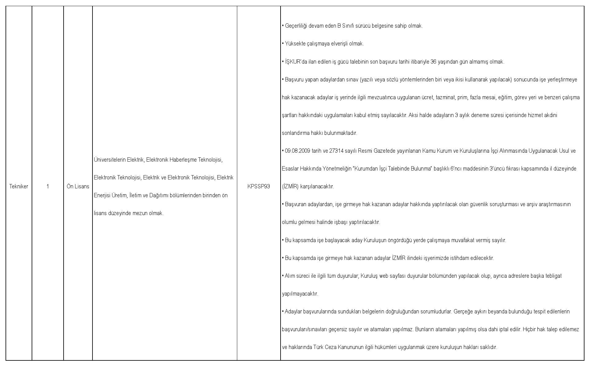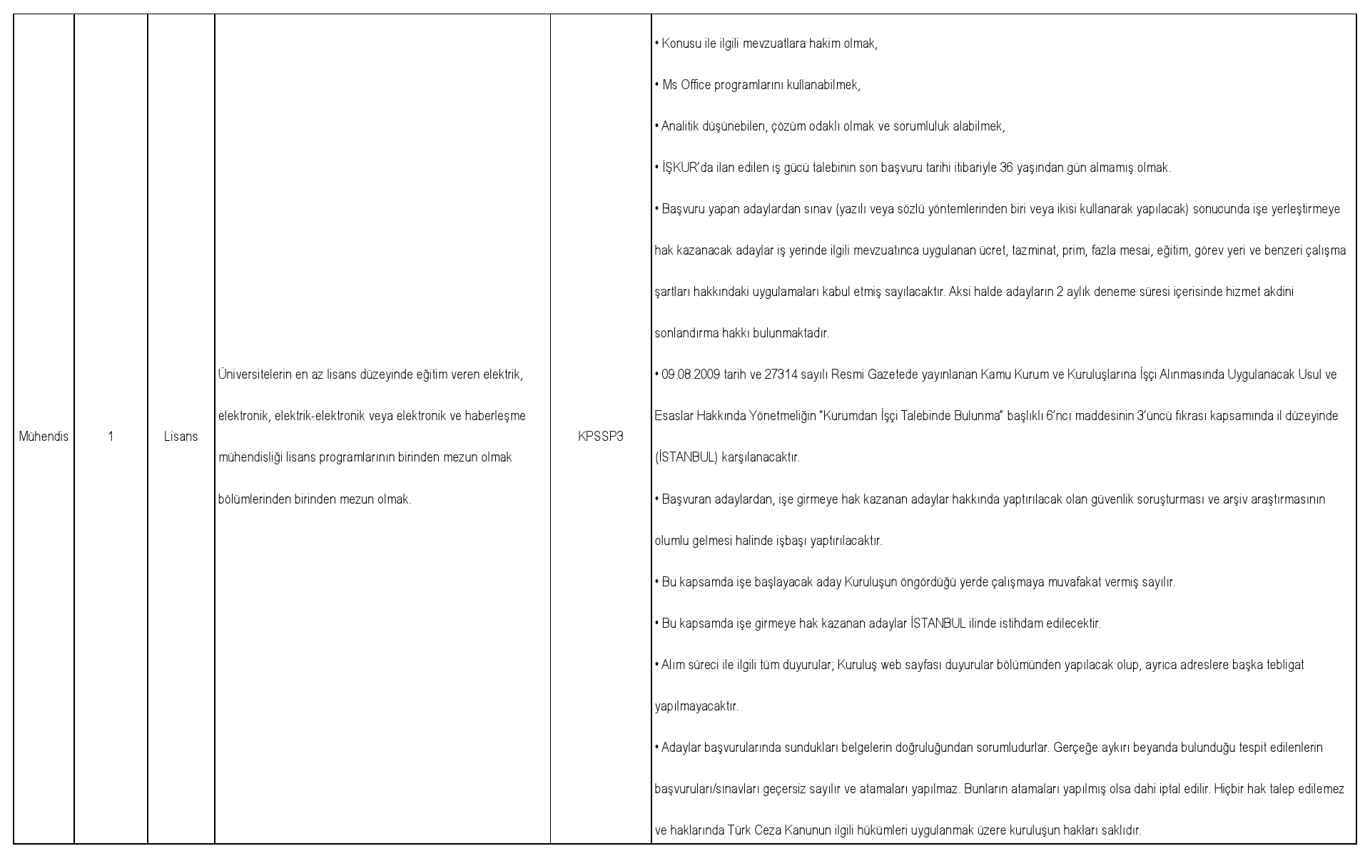 İlanlara Başvurular Türkiye İş Kurumu Üzerinden Yapılacaktır.