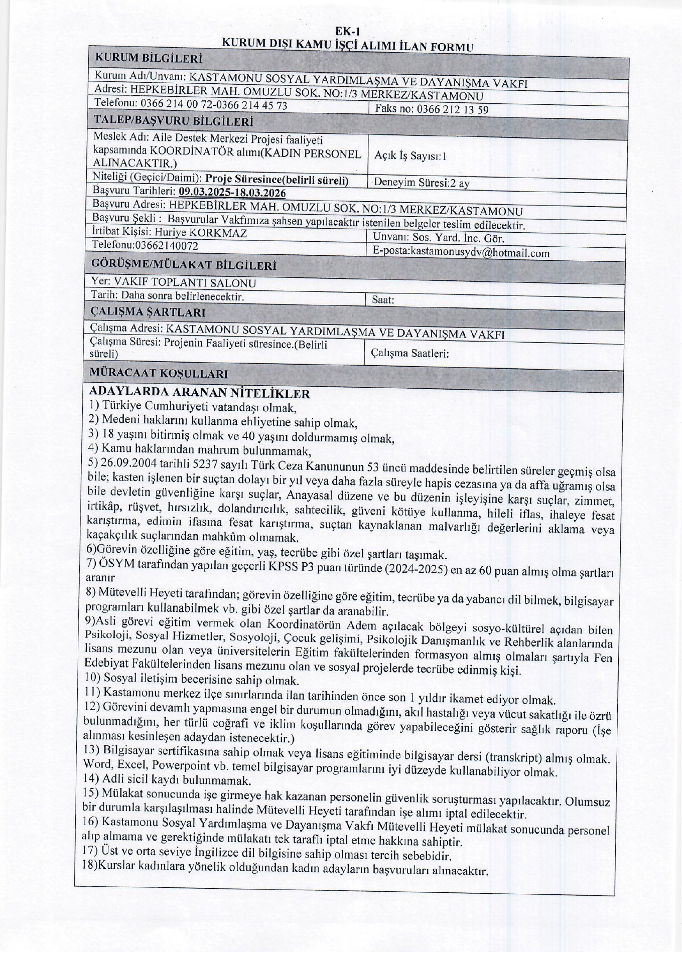 Ana sayfaDaimi İşçi İlanlarıAna sayfaSYDV İlanları Kastamonu SYDV 1 İşçi Alacak Kastamonu SYDV 1 İşçi Alacak. Son başvuru tarihi 18 Mart 2026 Kaynak : İşkur İlan Giriş : 09 Mart 2026 23:23, Son Güncelleme : 09 Mart 2026 23:50 Yazdır Yorumlar (0) Abone Ol