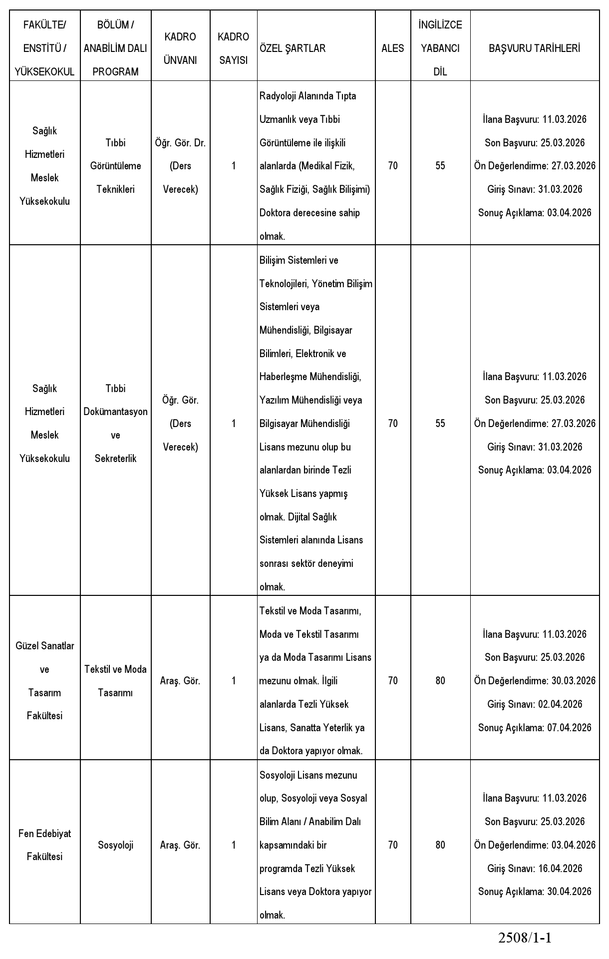 Son Başvuru Tarihi : 25.03.2026