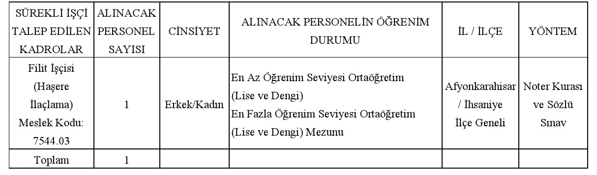 Afyonkarahisar Döğer Belediyesi 1 İşçi Alacak