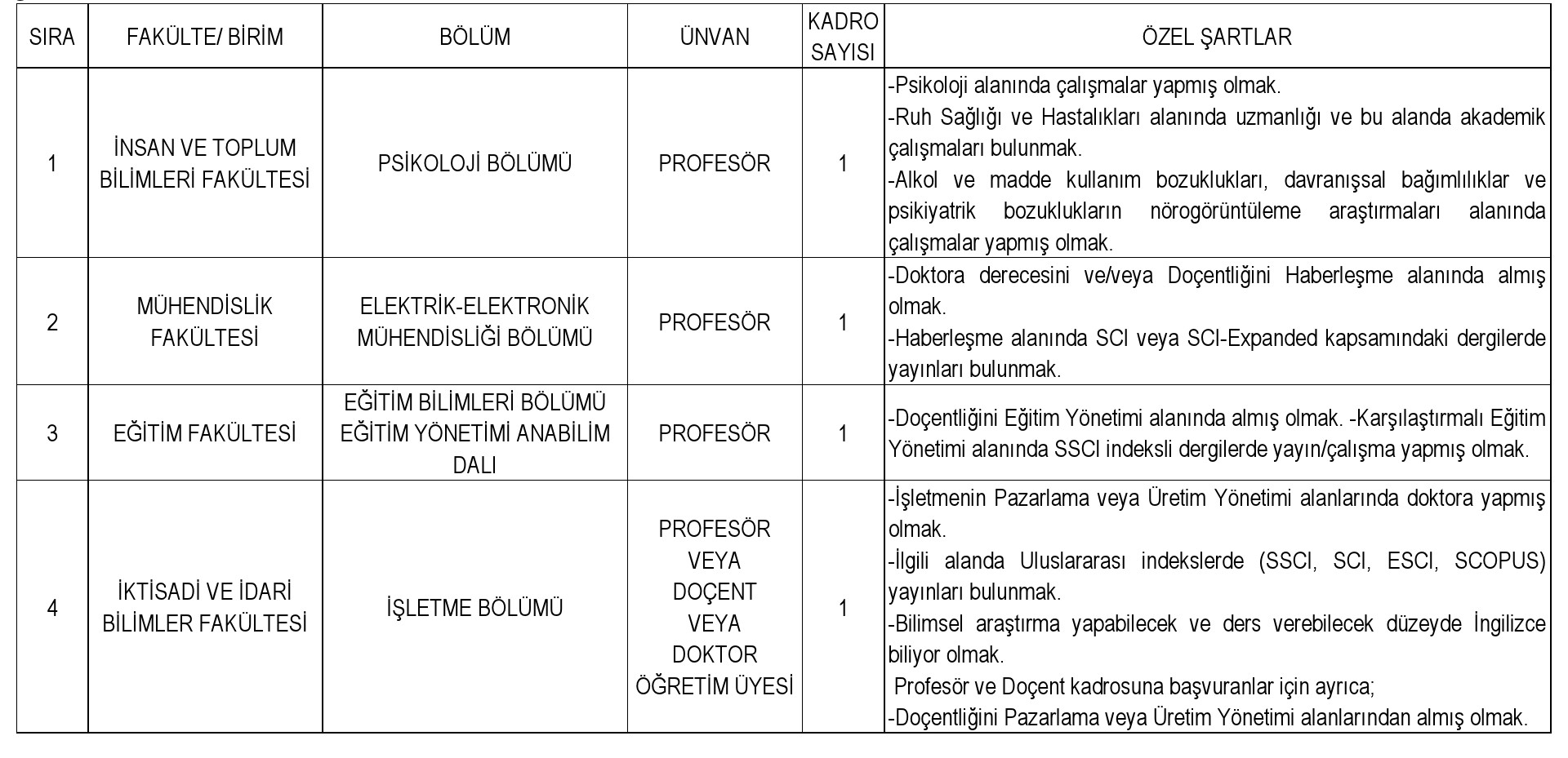 ÖĞRETİM ÜYESİ ALIM İLANI