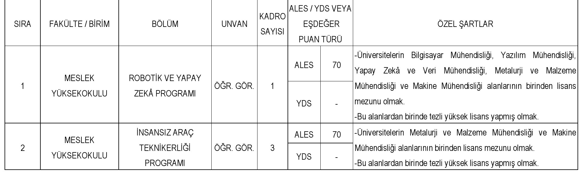 ÖĞRETİM ELEMANI ALIM İLANI