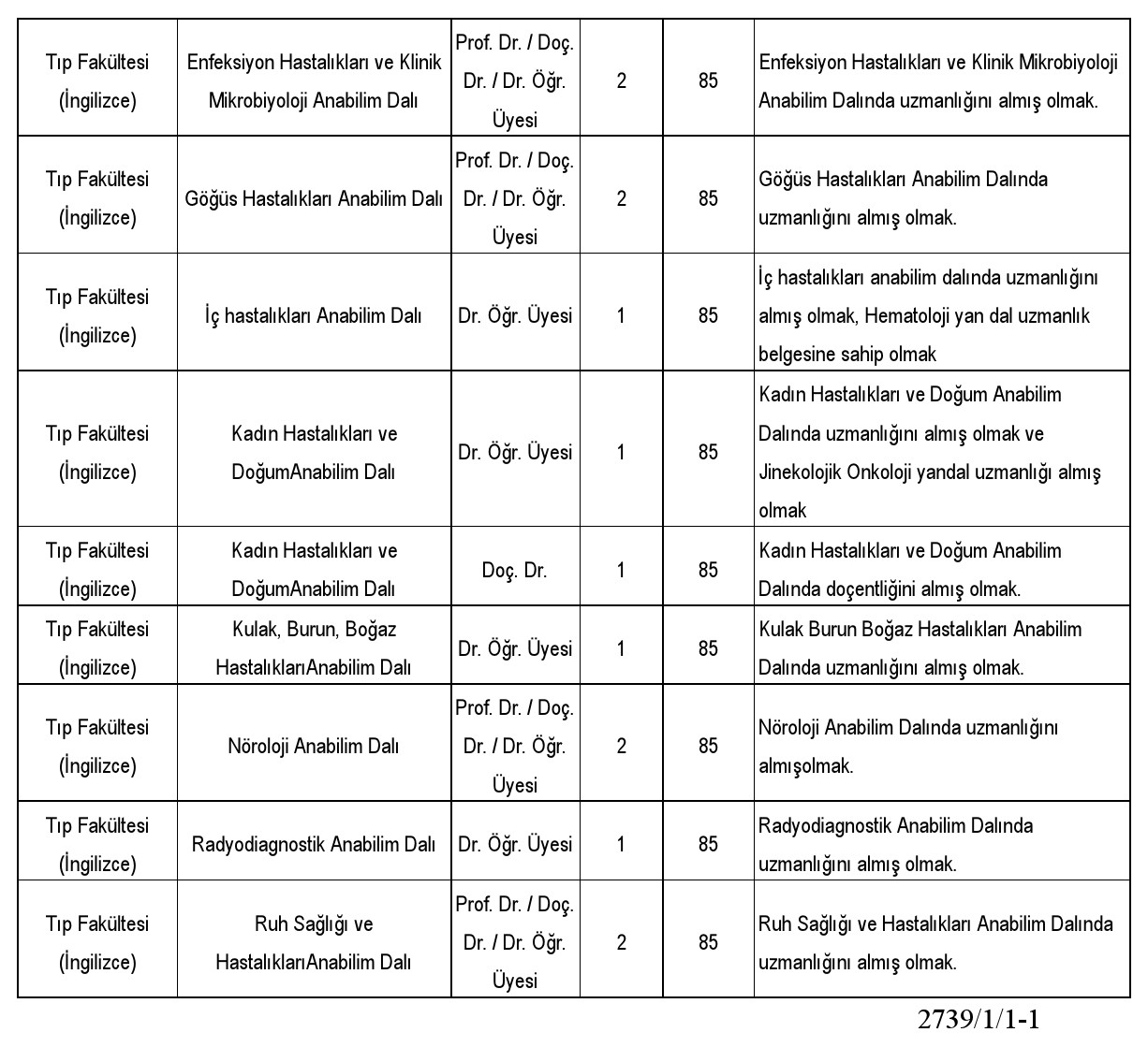 Üniversitemizin aşağıda belirtilen birimlerinde boş bulunan kadrolarına 2547 sayılı Yükseköğretim Kanunu ile Öğretim Üyeliğine Yükseltilme ve Atanma Yönetmeliği hükümleri ve İstinye Üniversitesi Akademik Atama/Yükseltme Kriterleri Yönergesi doğrultusunda Öğretim Üyesi alınacaktır.