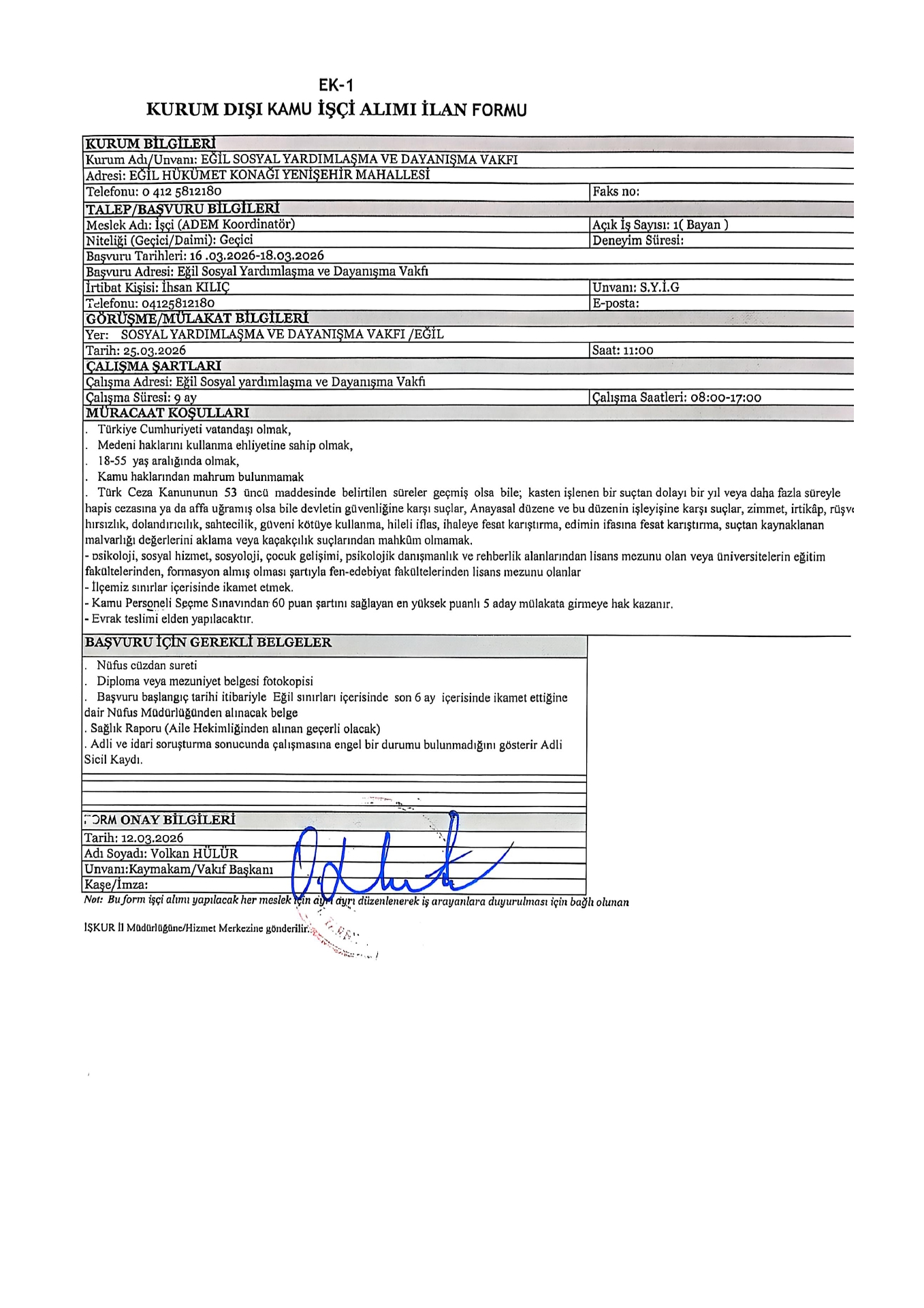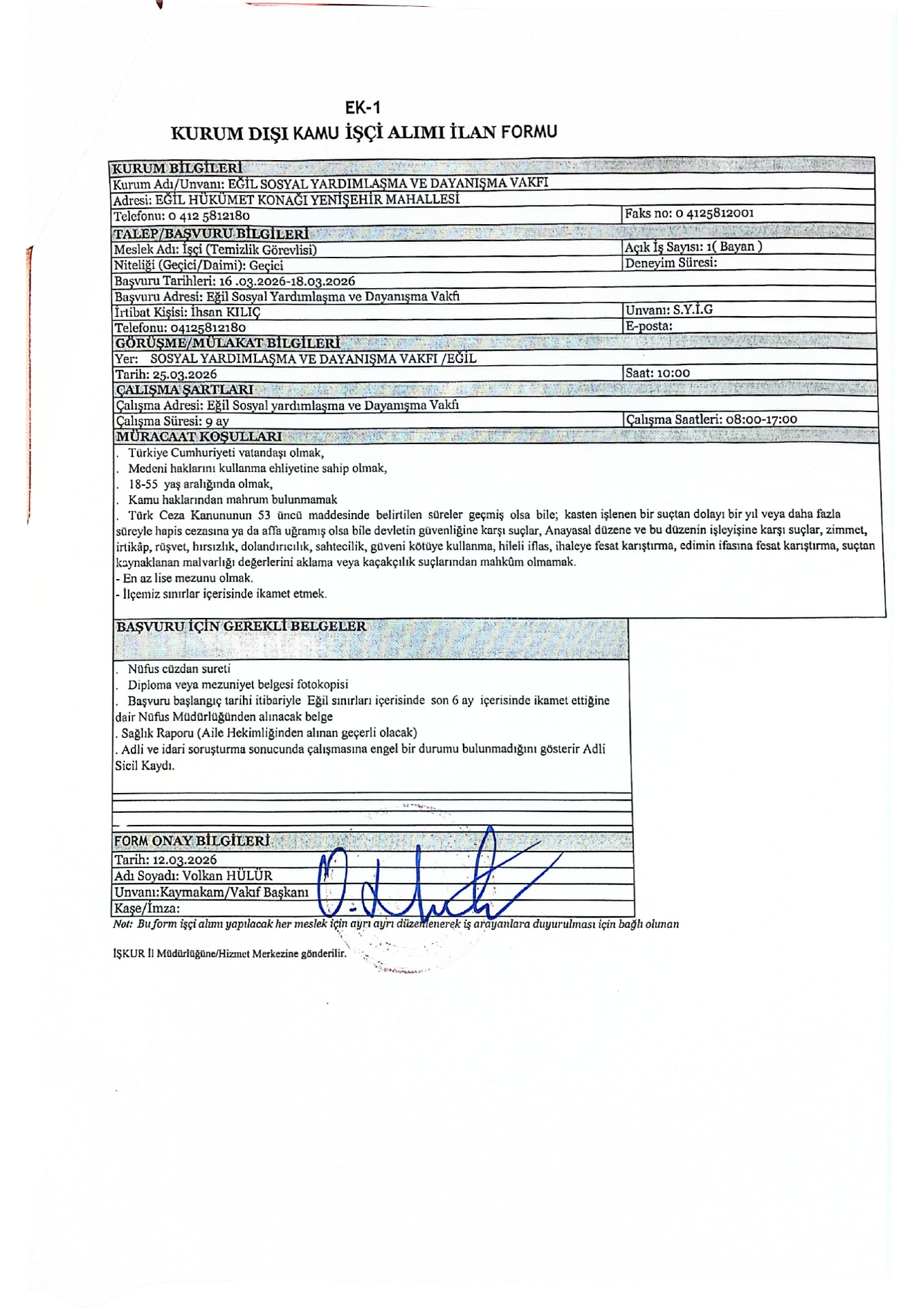 Ana sayfaSYDV İlanlarıAna sayfaGeçici İşçi İlanları Diyarbakır Eğil SYDV Geçici 2 İşçi Alacak Diyarbakır Eğil SYDV Geçici 2 İşçi Alacak. Son başvuru tarihi 18 Mart 2026 Kaynak : İşkur İlan Giriş : 16 Mart 2026 23:18, Son Güncelleme : 16 Mart 2026 23:32 Yazdır Yorumlar (0) Abone Ol