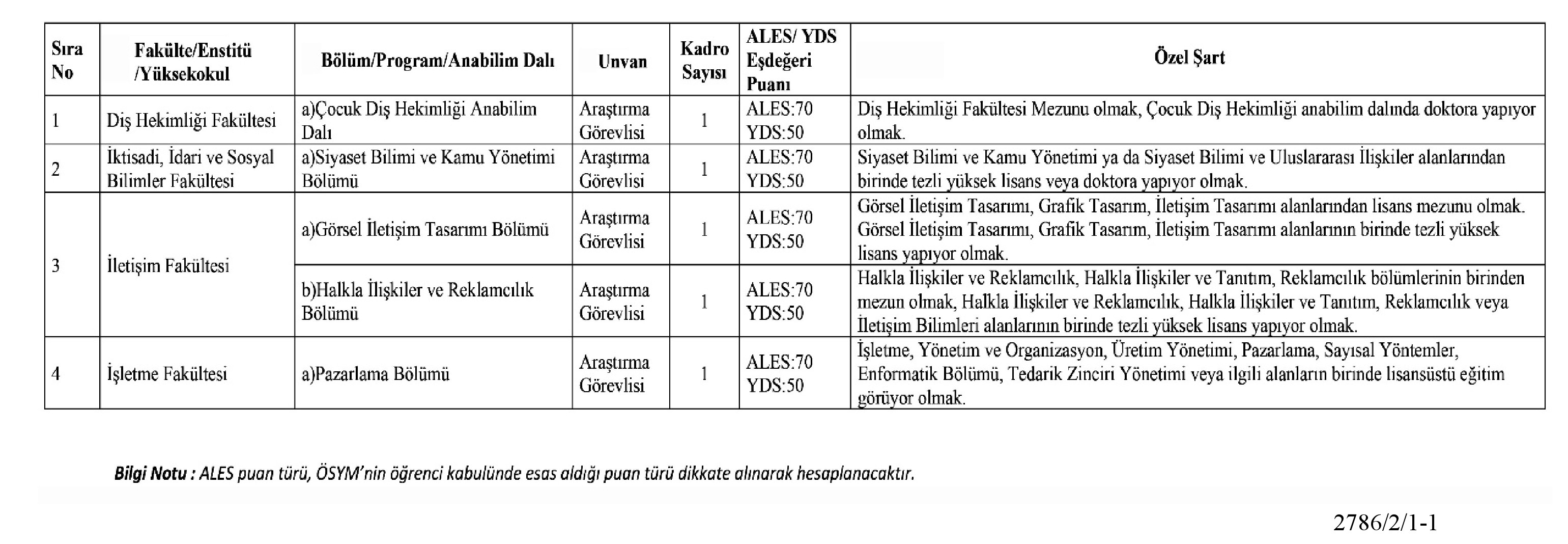 . Adayların, 2547 sayılı Yükseköğretim Kanunundaki genel koşulları ve kadrolarının karşısında belirtilen özel koşulları karşılıyor olmaları gerekir.