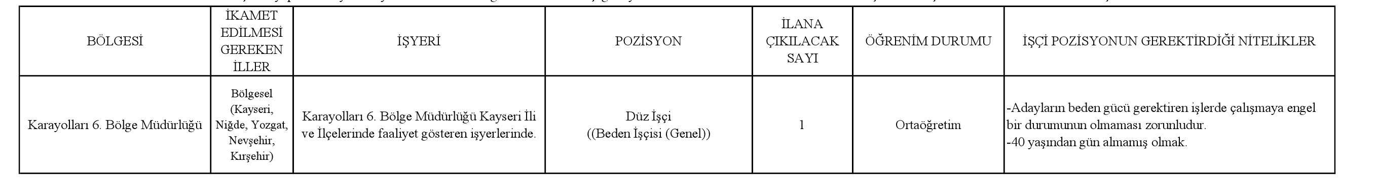 SÜRESİ BELİRLİ OLMAYAN SÜREKLİ İŞ SÖZLEŞMESİ İLE ÇALIŞTIRILMAK ÜZERE; TOPLAM 1 (BİR) TERÖRLE MÜCADELEDE MALÜL SAYILMAYACAK ŞEKİLDE YARALANAN (TMY) İŞÇİ ALINACAKTIR.