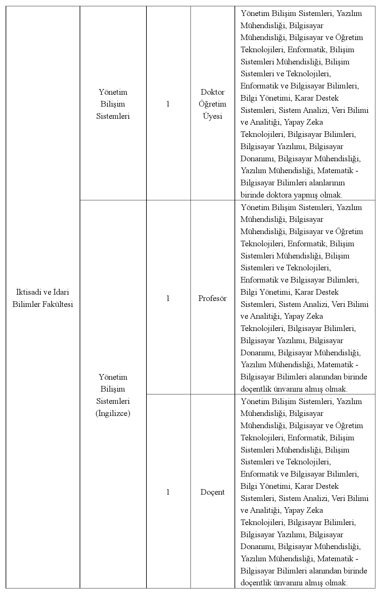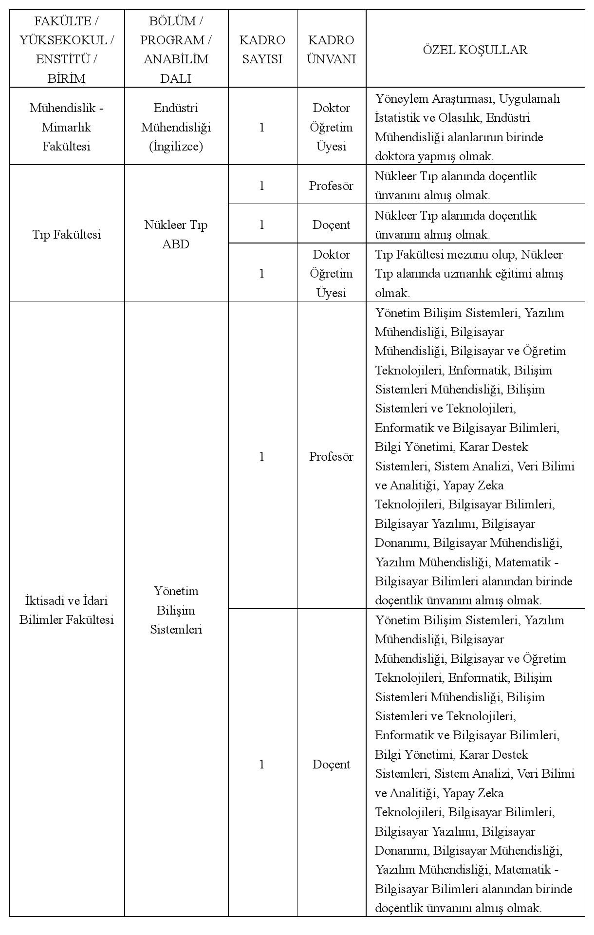 Doktor Öğretim Üyesi Kadrosuna Başvuracaklar;