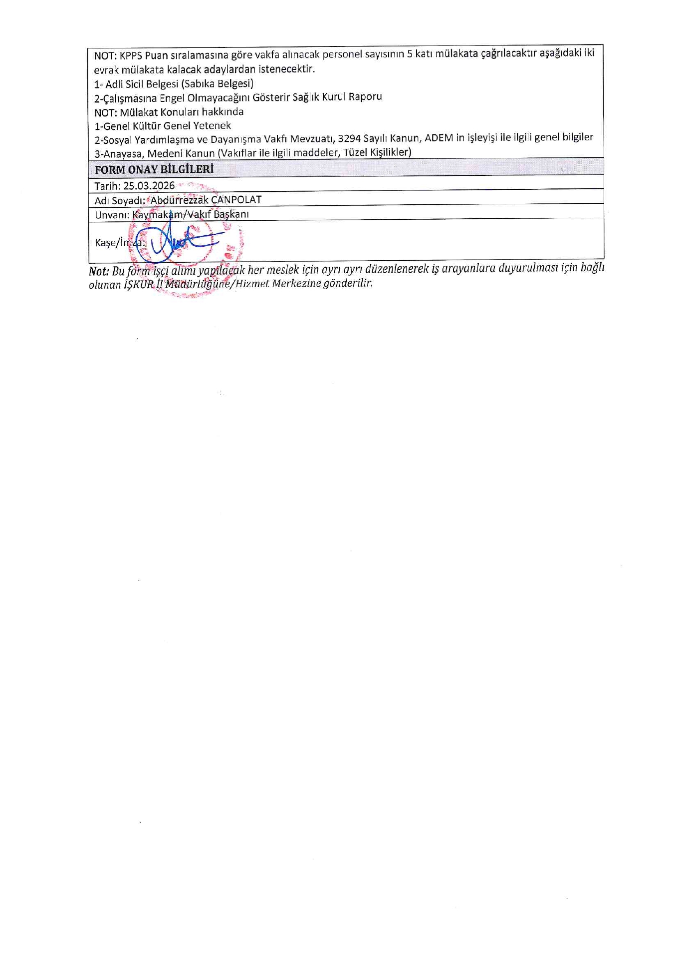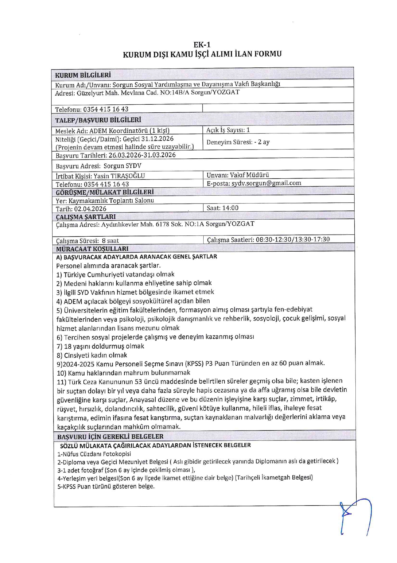 Ana sayfaDaimi İşçi İlanları Yozgat Surgun SYDV Geçici 1 İşçi Alacak Yozgat Surgun SYDV Geçici 1 İşçi Alacak. Son başvuru tarihi 31 Mart 2026 Kaynak : İşkur İlan Giriş : 25 Mart 2026 21:35, Son Güncelleme : 25 Mart 2026 22:41 Yazdır Yorumlar (0) Abone Ol