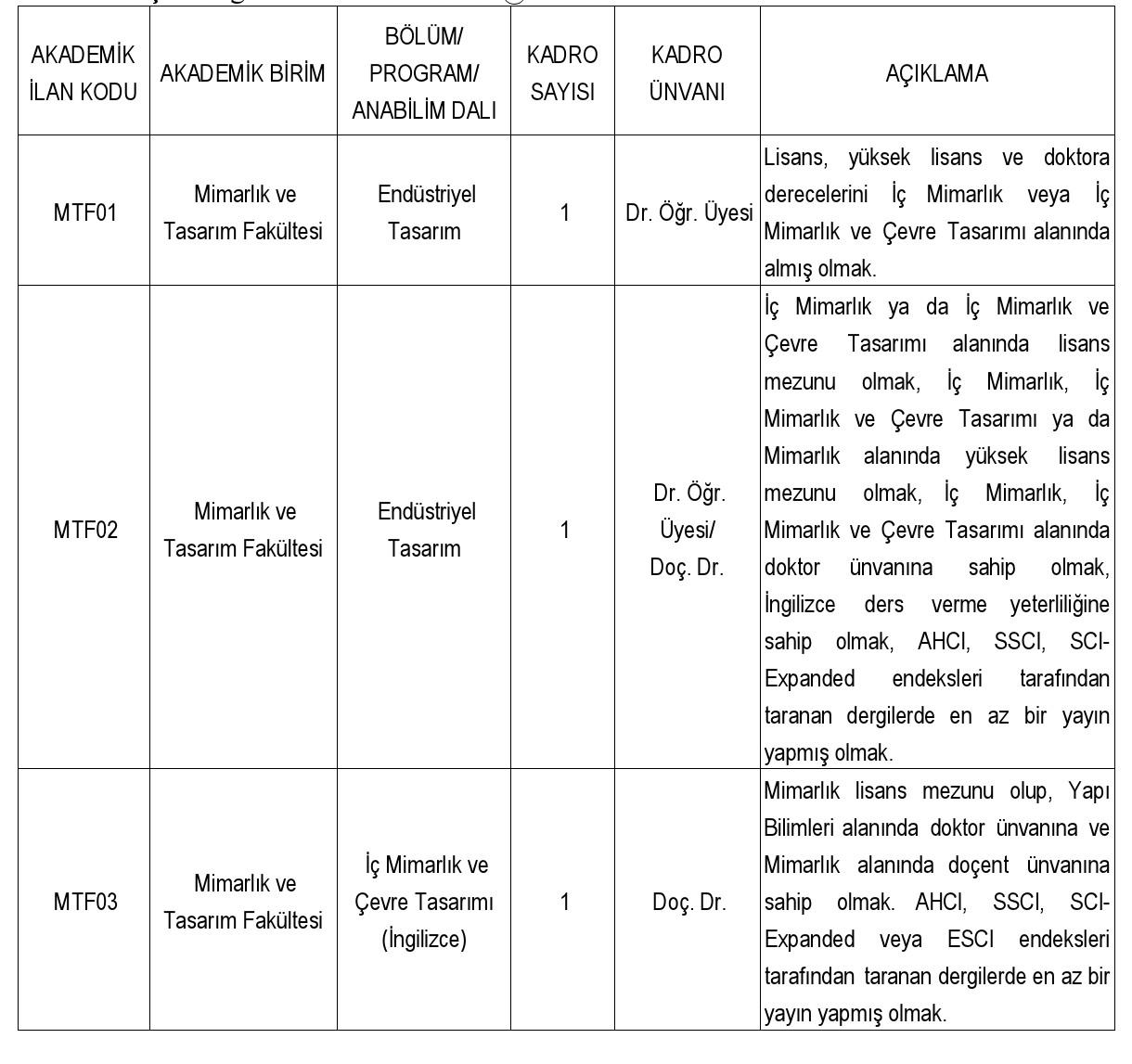 1. İlgili akademik birime hitaben yazılmış, başvurulan bölüm ve adayın iletişim bilgilerini içeren başvuru dilekçesi.