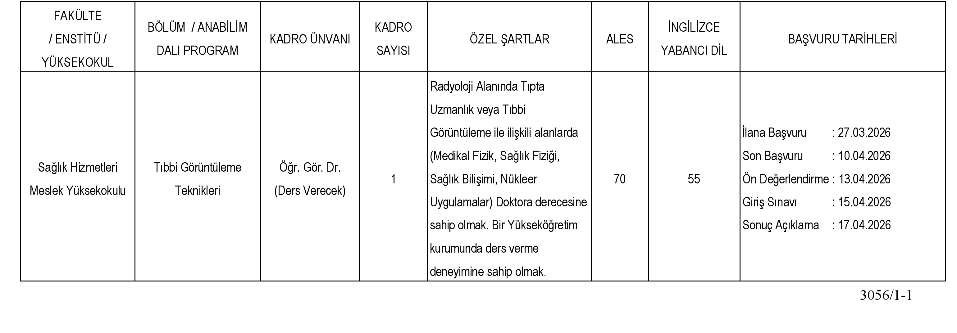 İlan Tarihi : 27.03.2026