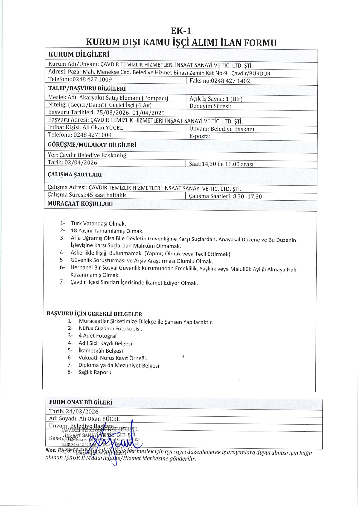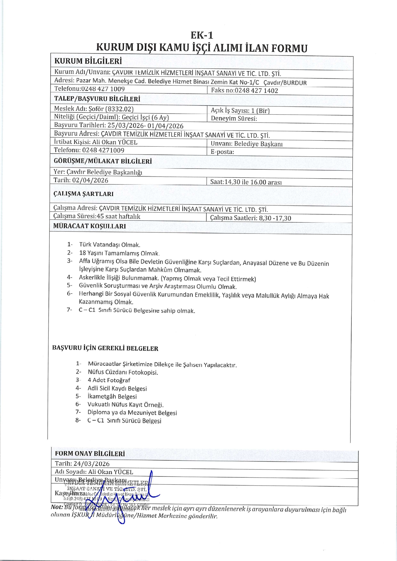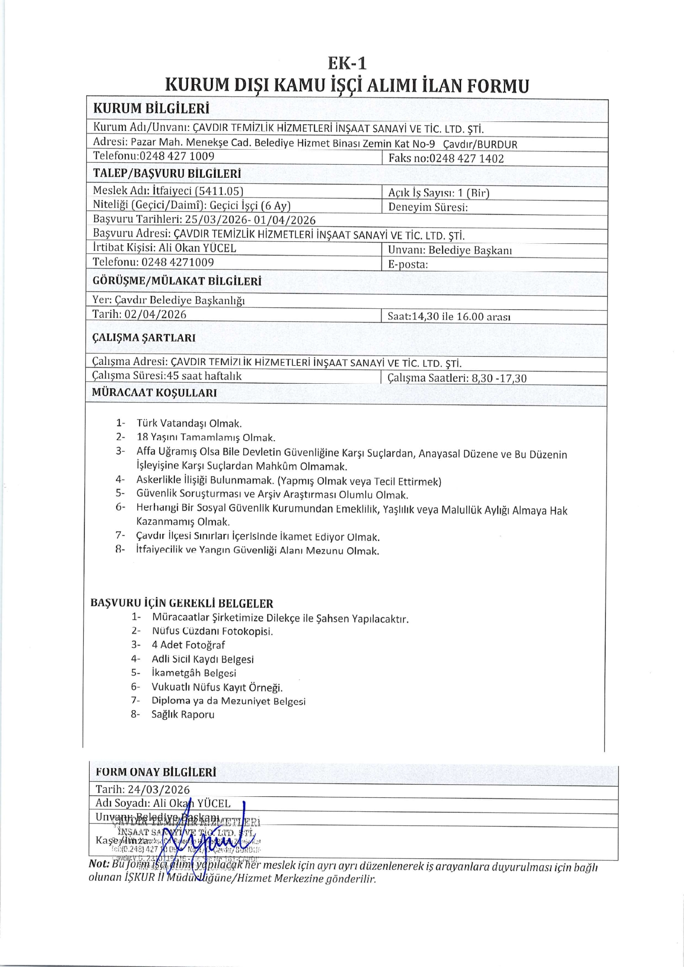 İlan Giriş : 27 Mart 2026 22:55, Son Güncelleme : 27 Mart 2026 23:26