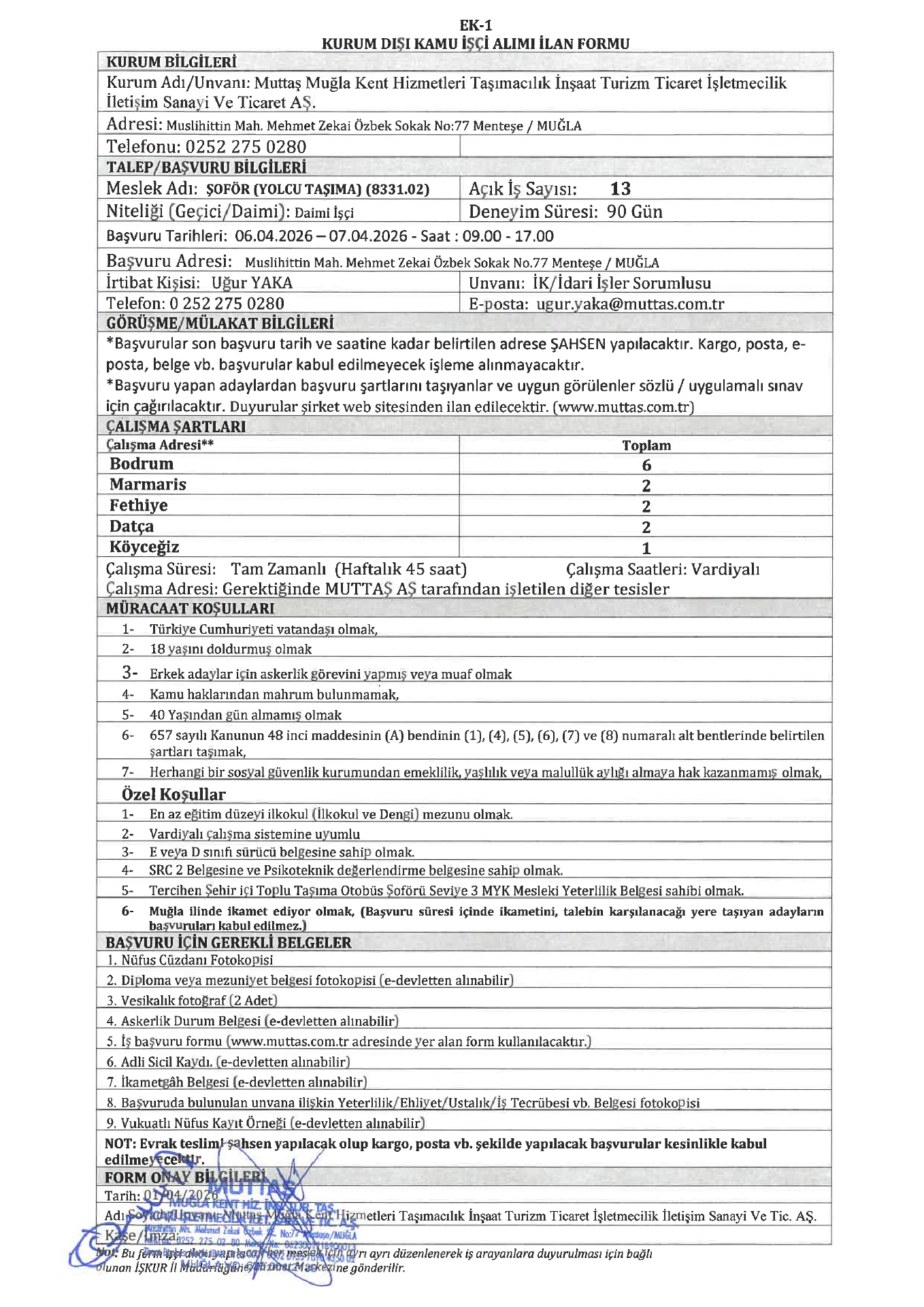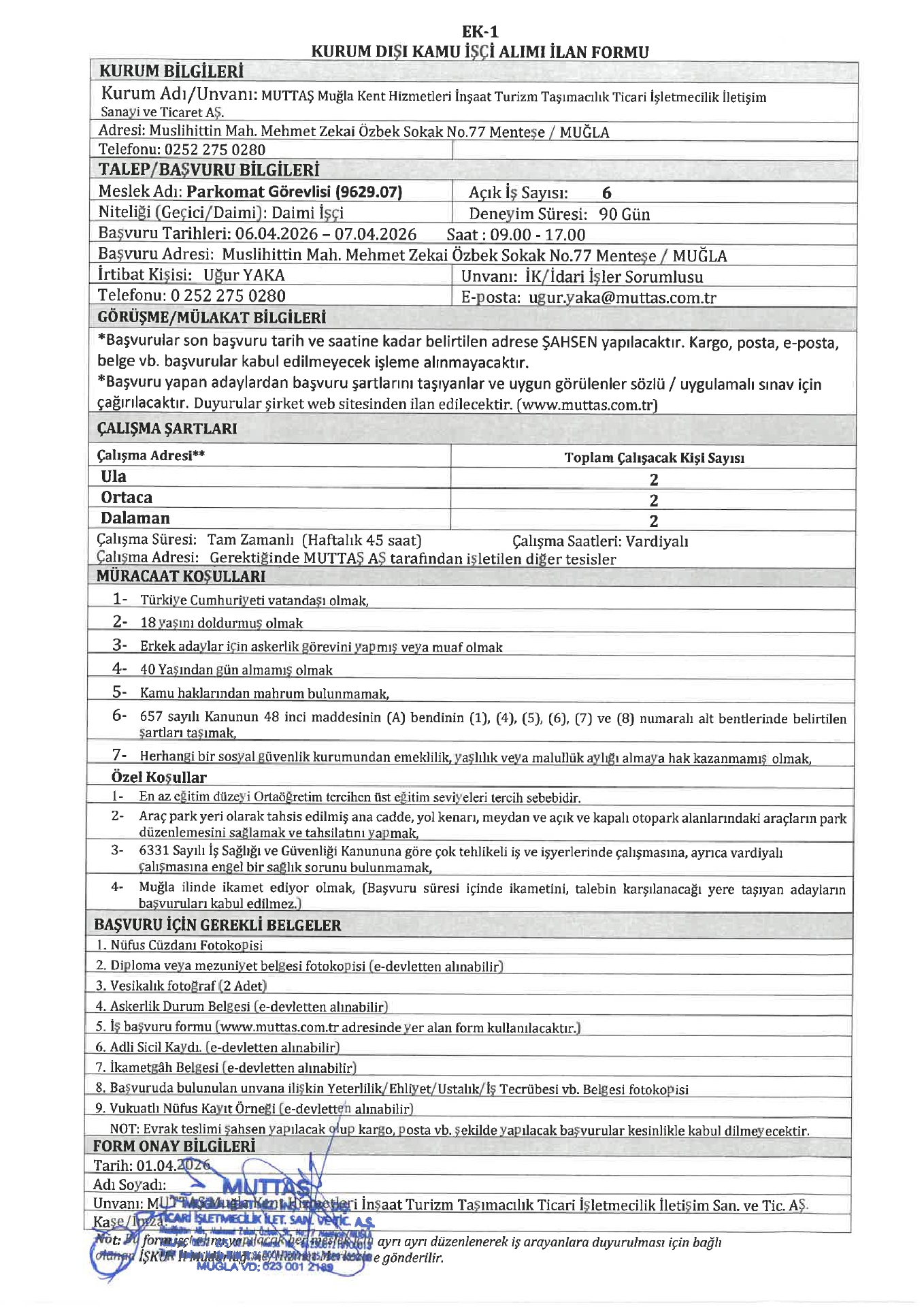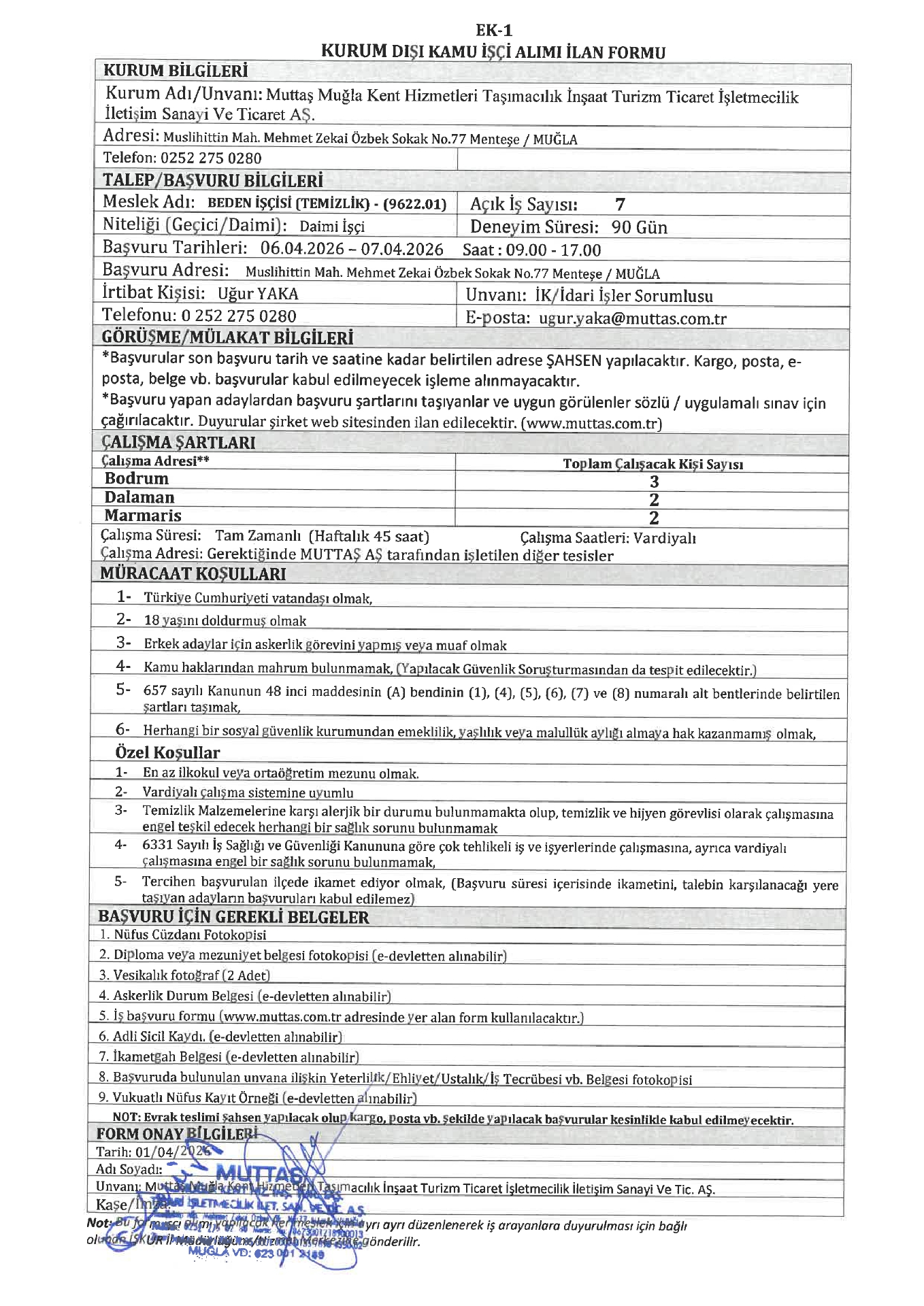 Muğla Muttaş 26 İşçi Alacak. Son başvuru tarihi 7 Nisan 2026