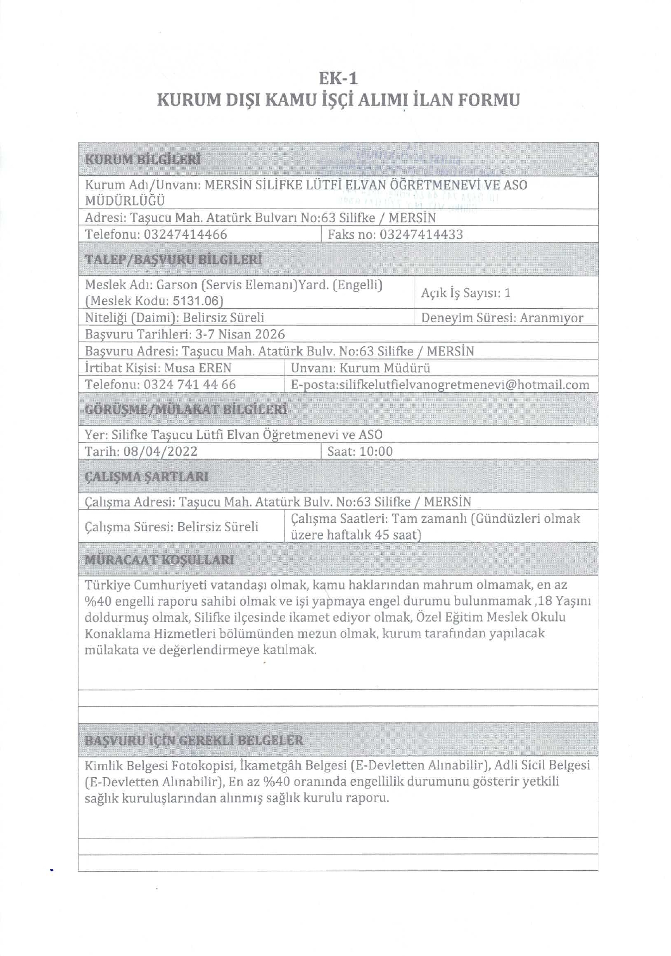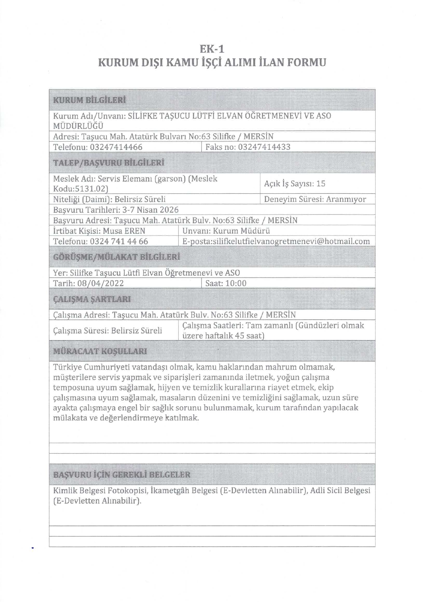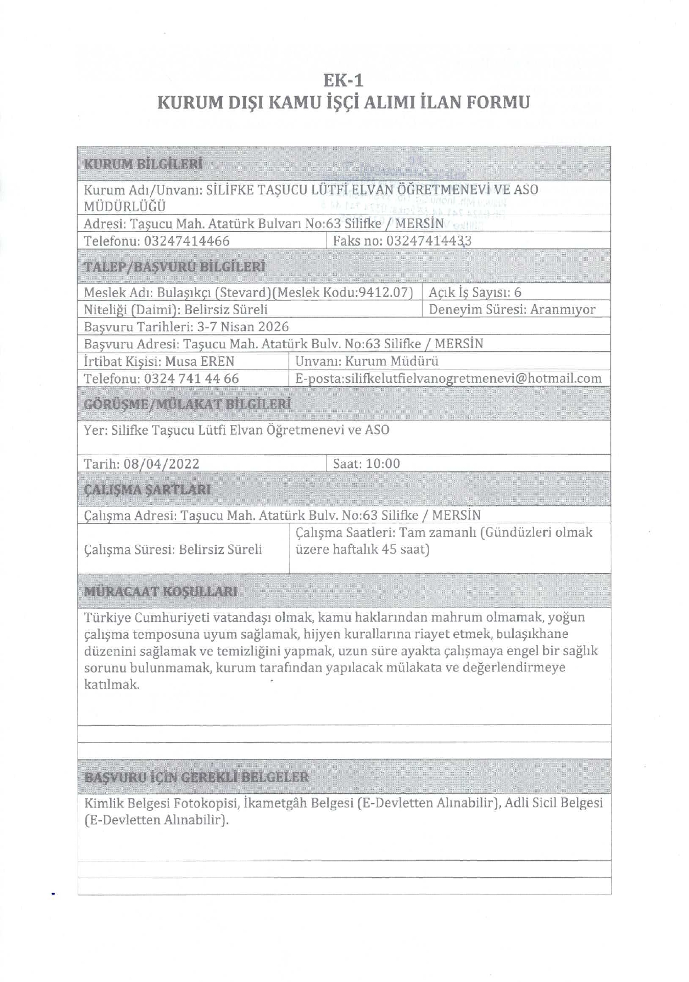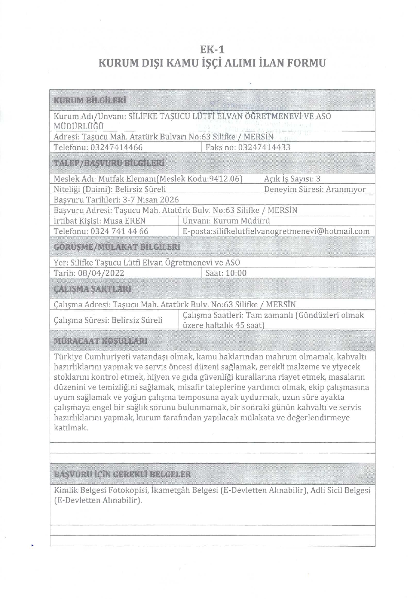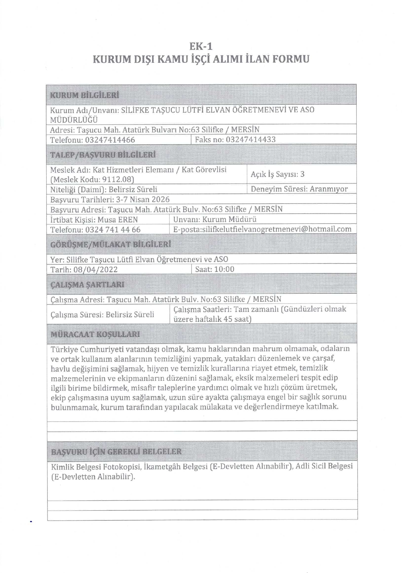Mersin Silifke Taşucu Lütfi Elvan Öğretmenevi 27 İşçi Alacak. Son başvuru tarihi 7 Nisan 2026