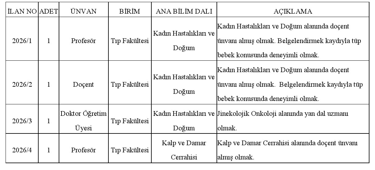ÖĞRETİM ÜYESİ ALIM İLANI