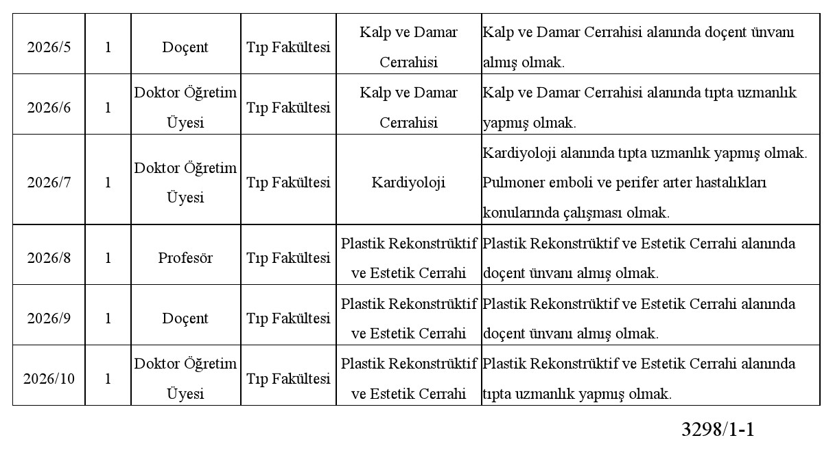 Üniversitemize 2547 sayılı Kanun Hükümlerine göre Öğretim Üyesi alınacaktır. Adayların 657 sayılı Kanunun 48. maddesinde ve diğer ilgili mevzuatlardaki şartları taşımaları gerekmektedir.