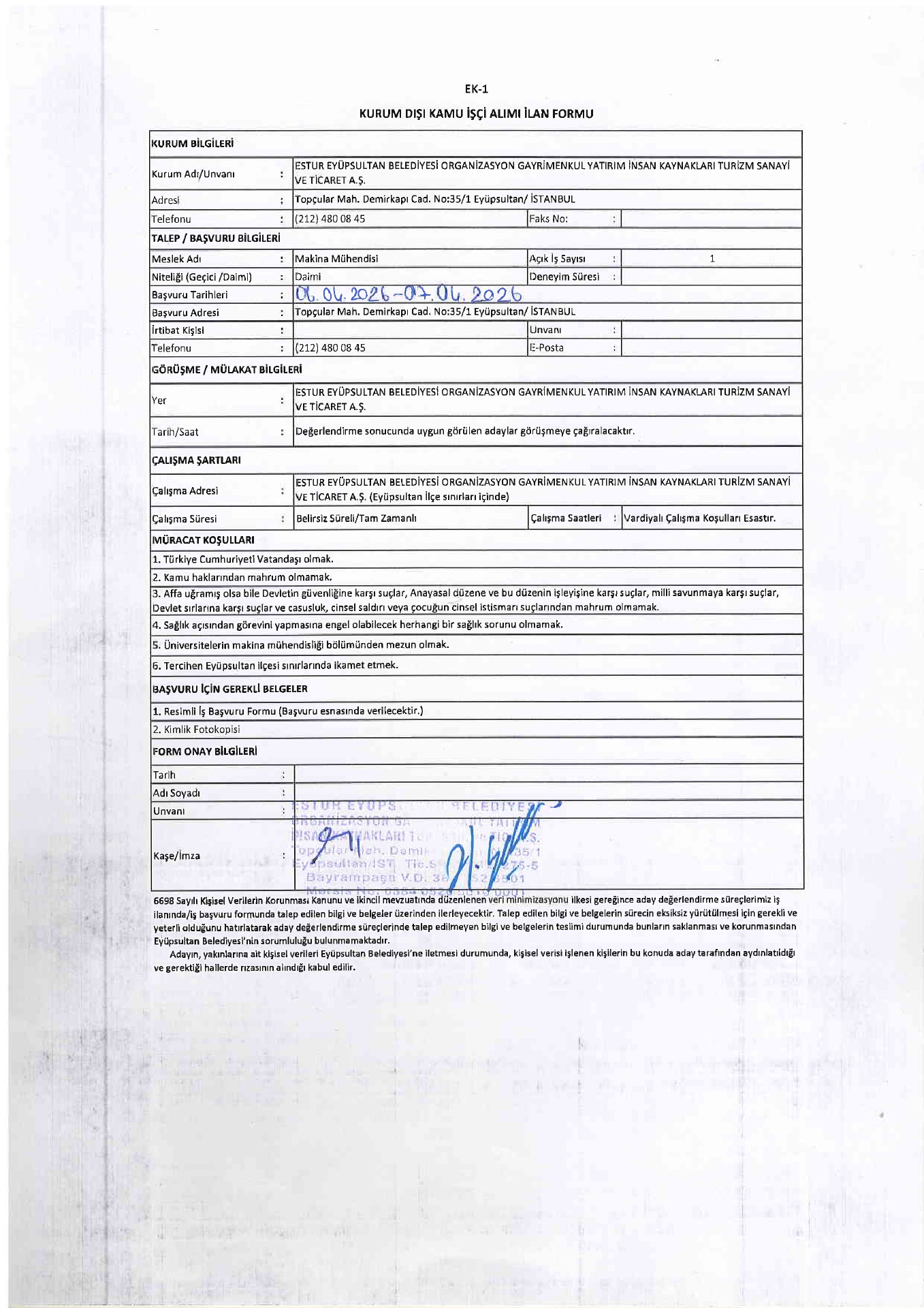 İstanbul Estur 1 İşçi Alacak. Son başvuru tarihi 7 Nisan 2026