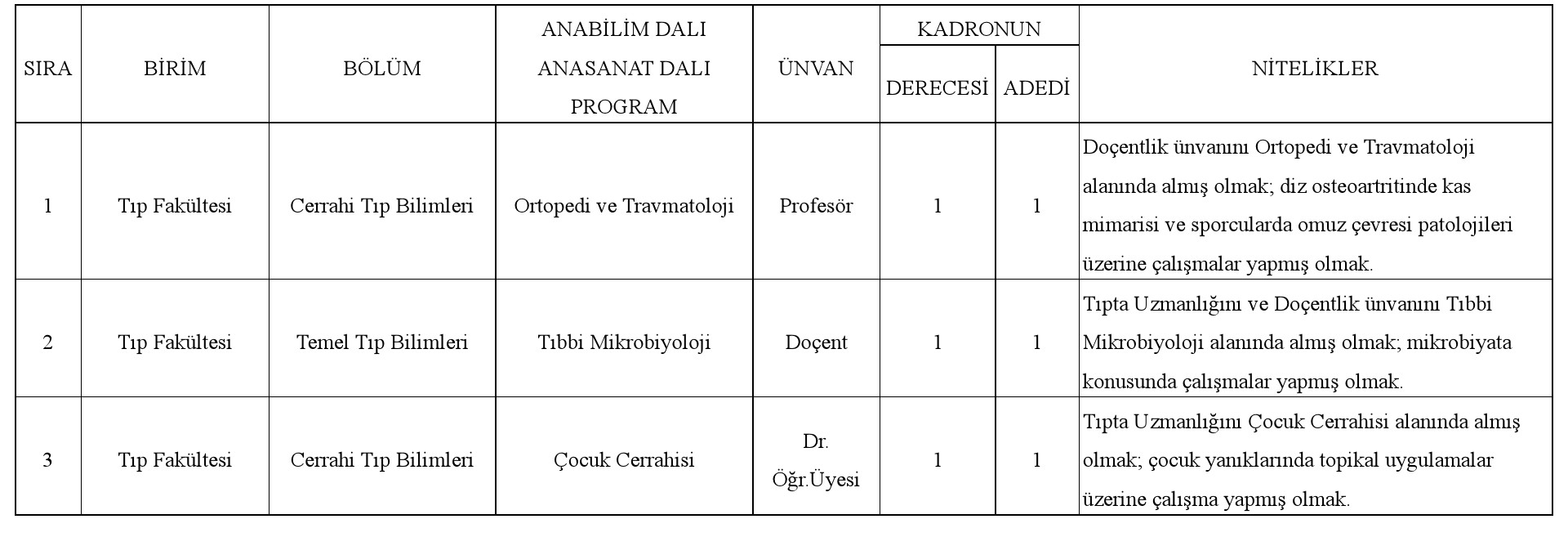 2 Kasım 2018 tarihli ve 30583 sayılı Resmi Gazete'de yayımlanan "Devlet Yükseköğretim Kurumlarında Öğretim Elemanı Norm Kadrolarının Belirlenmesine ve Kullanılmasına İlişkin Yönetmelik" kapsamında, Üniversitemiz çeşitli birimlerine; 2547 sayılı Yükseköğretim Kanunu, 2914 sayılı Yükseköğretim Personel Kanunu, Öğretim Üyeliğine Yükseltilme ve Atanma Yönetmeliği ve Burdur Mehmet Akif Ersoy Üniversitesi Öğretim Üyeliği Kadrolarına Başvuru Koşulları ve Uygulama İlkeleri Hakkında Yönergesinin (Bknz: Genel Açıklamalar 14. madde) ilgili hükümleri uyarınca öğretim üyesi alınacaktır.
