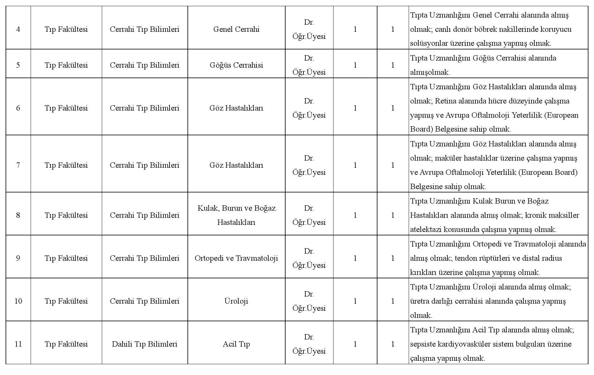 7.Üniversitemizce, ilan edilen her kadro pozisyonu için Öğretim Üyeliğine Yükseltilme ve Atanma Yönetmeliğinin 3. maddesinin 3. fıkrası uyarınca özel şart belirlenebilir.