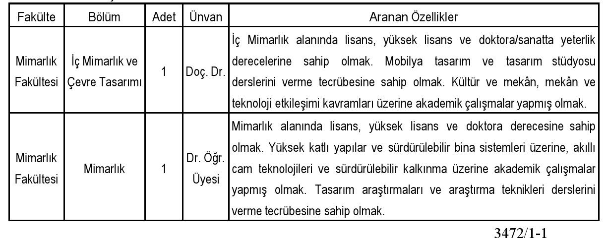 Üniversitemizin aşağıda belirtilen akademik birimlerine 2547 sayılı Yükseköğretim Kanunu ve Öğretim Üyeliğine Yükseltilme ve Atanma Yönetmeliği'nin ilgili maddeleri uyarınca, Üniversitemizin Akademik Birimlerine tam zamanlı öğretim üyeleri alınacaktır. Başvuru için;